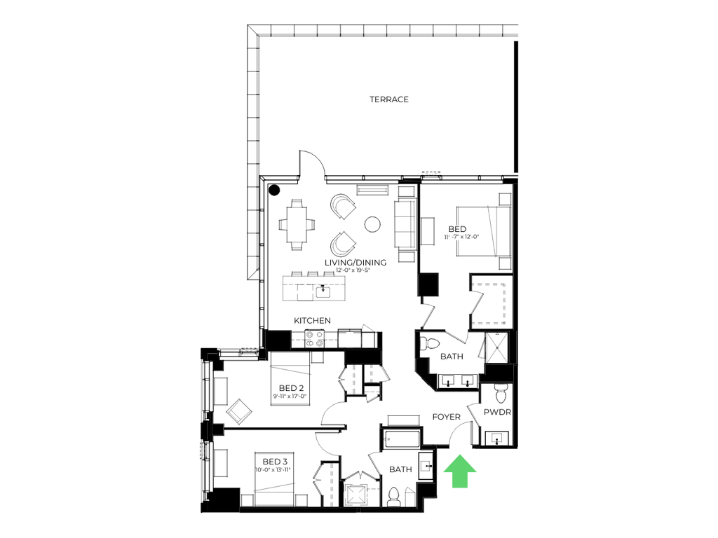 Apartment Model: SD56 | Studio | 1 Bath | DenFrom $5,152Studio, 1 Bath, 776 sq ftAvailable NowFloor plans are artist's rendering. All dimensions are approximate. Actual product and specifications may vary in dimension or detail. Not all features are available in every rental home. Prices and availability are subject to change. Base rent is based on monthly frequency. Additional fees may apply, such as but not limited to package delivery, trash, water, amenities, etc. Deposits vary. Please see a representative for details.