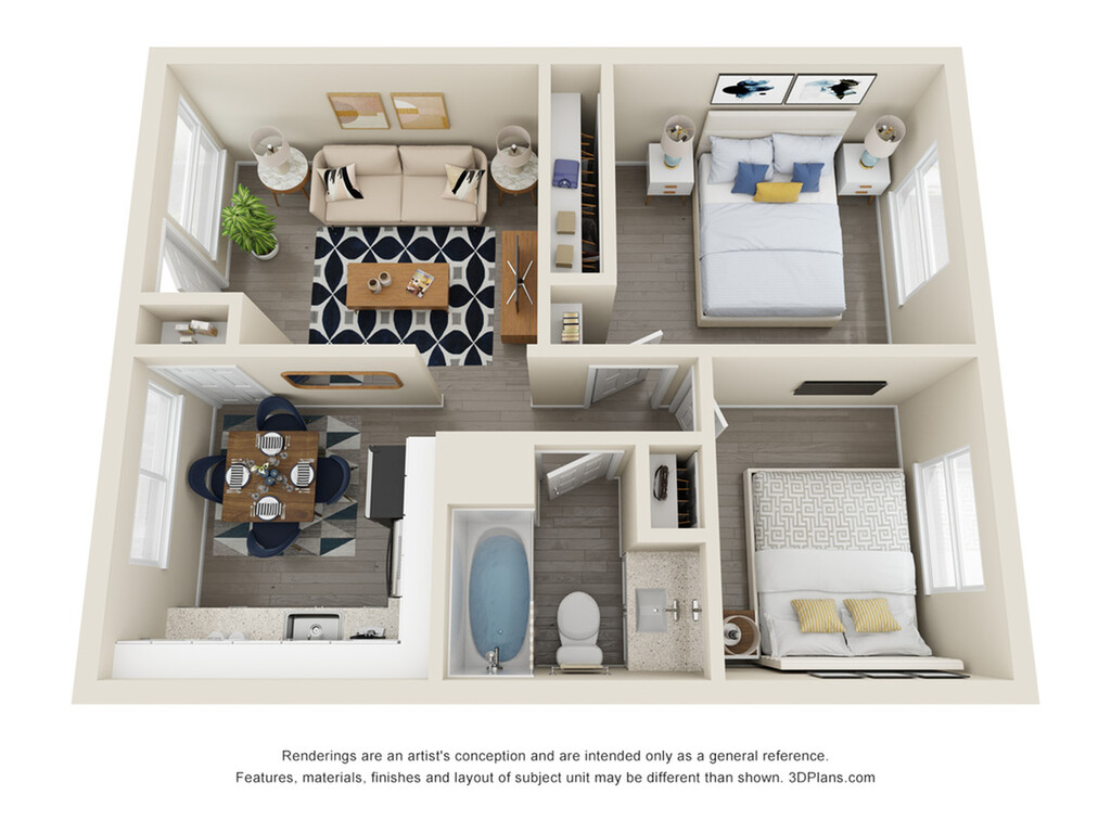 2 Beds, 2 Baths, 750 sq ftModel Gallery