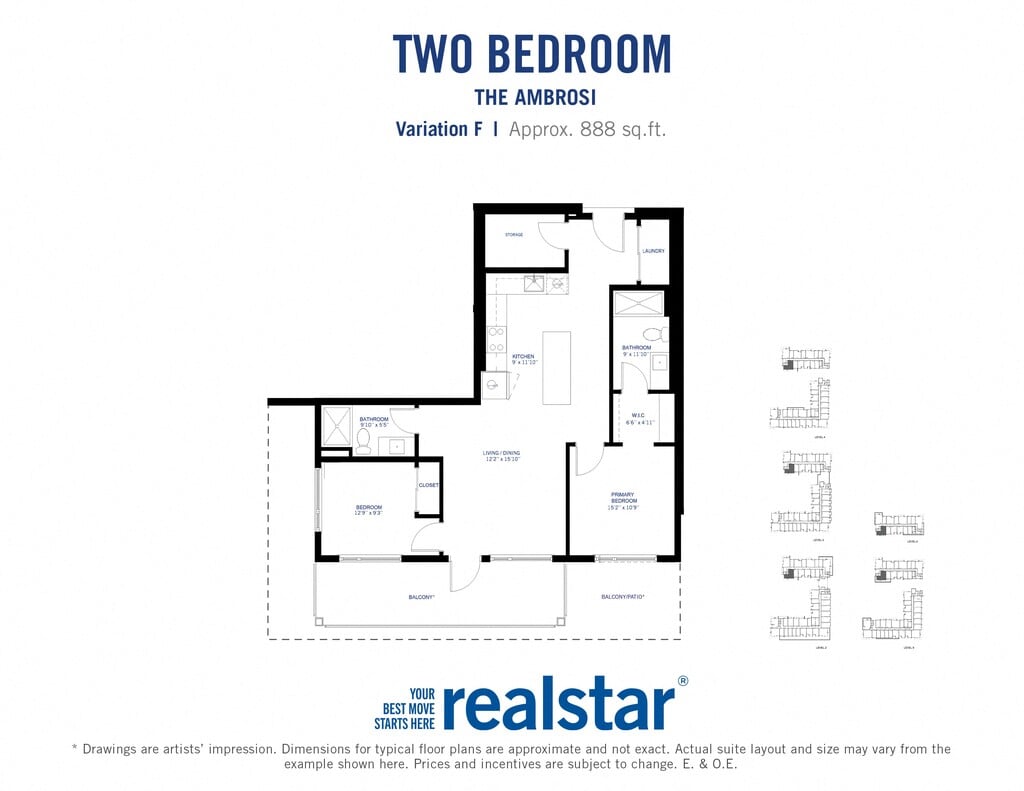 THE AMBROSI offers Studio to 3 Bedroom apartments starting from $1,625 and having 416–1,749 sq ft. Here is the current pricing and availability: