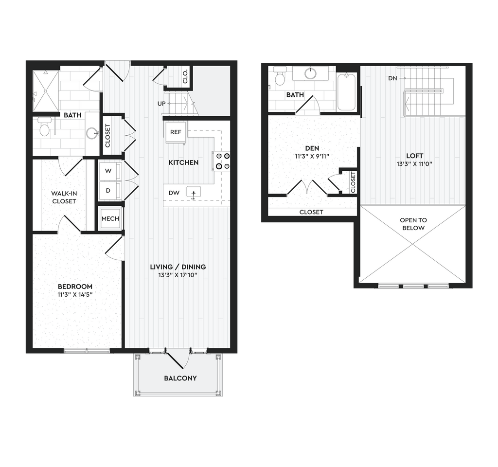 A1 + L_1 Bed/2 Bath Loft Den - Floorplan 1 Apartment Unit: 321Apartment Model: A1 + L_1 Bed/2 Bath Loft Den$4,9851 Bedroom, 2 Bath, 1121 sq ftAvailable Now![]()