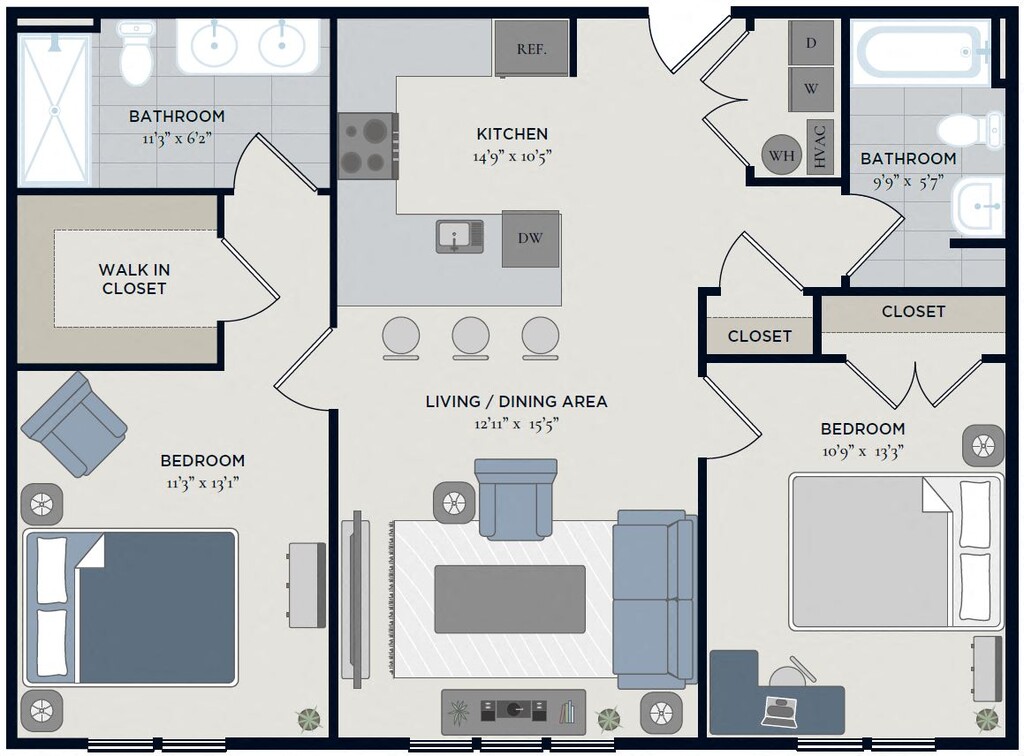 Apartment Model: Anchor Collection-The Kelly2 Bedroom, 2 Bath, 1054-1100 sq ftAvailable Now![]()
