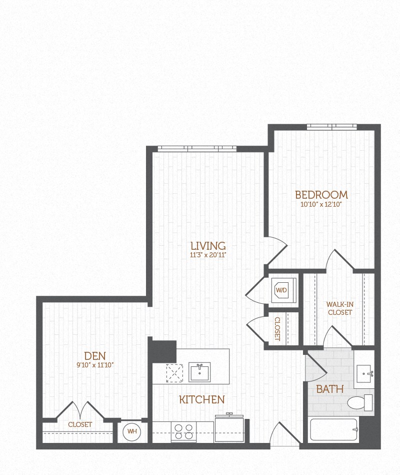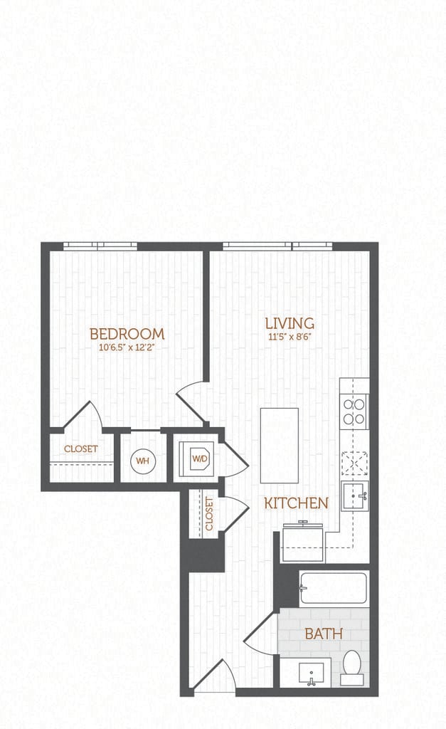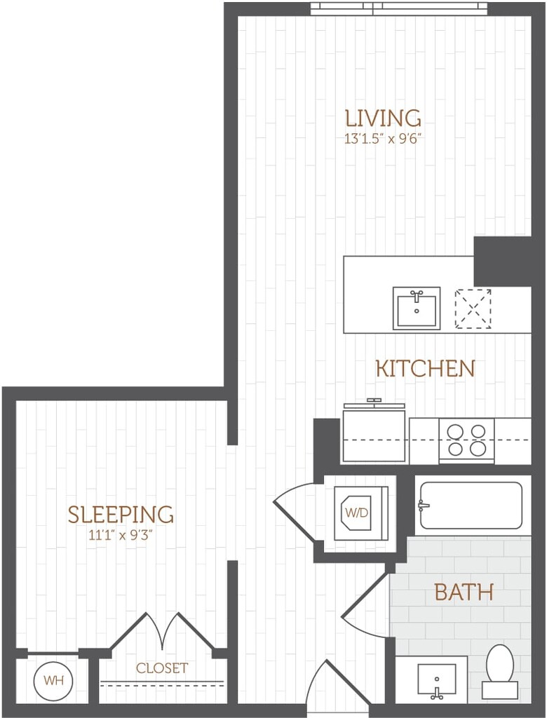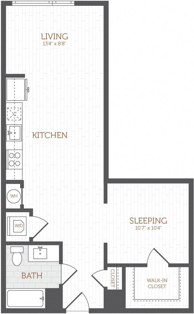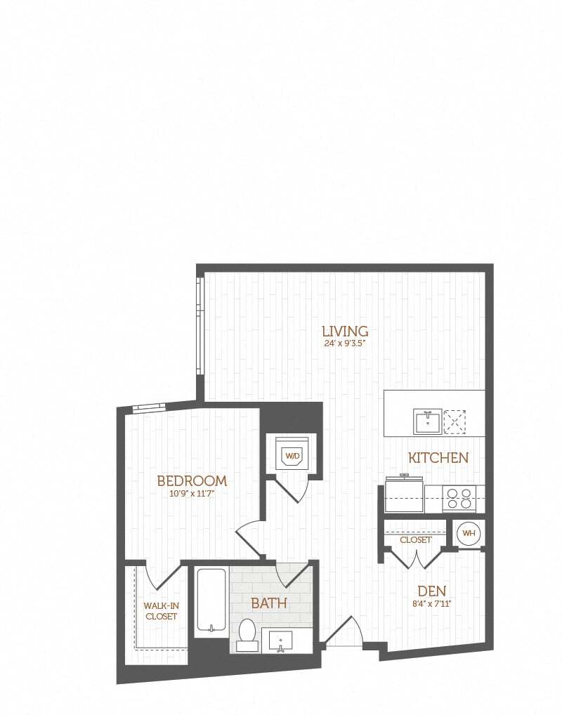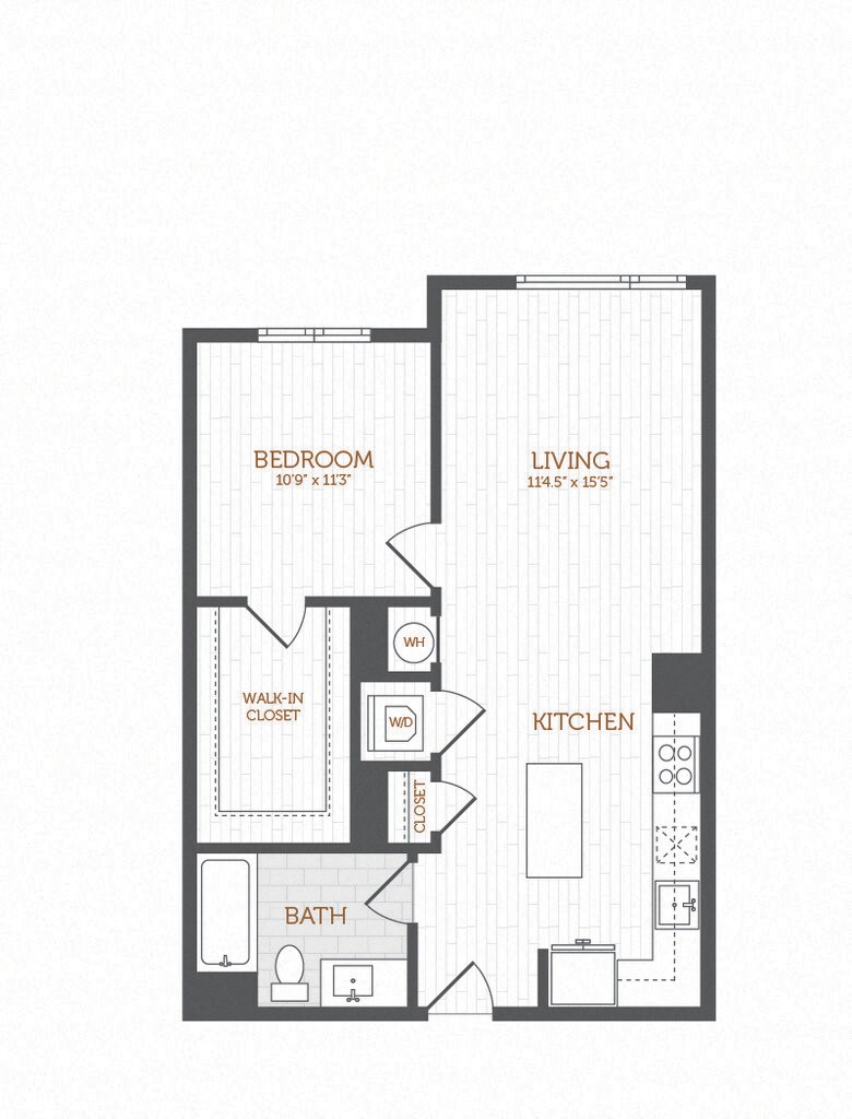 Studio, 1 Bath, 587 sq ftTotal Monthly PriceAvailable NowModel Gallery