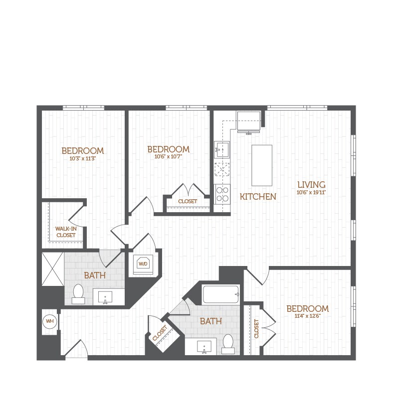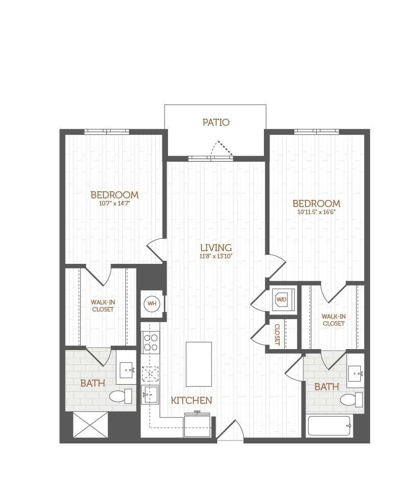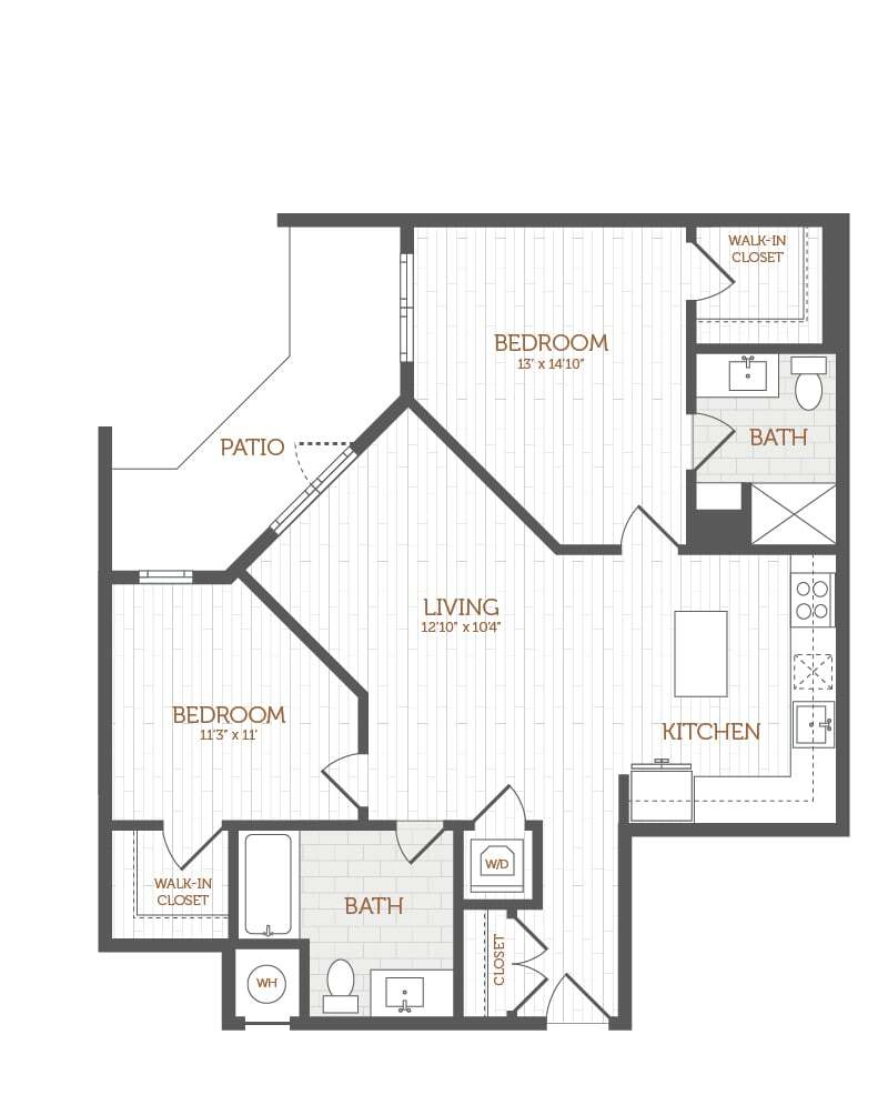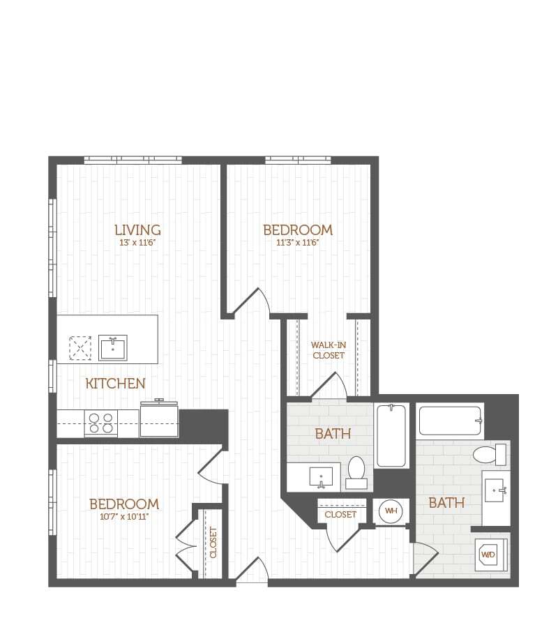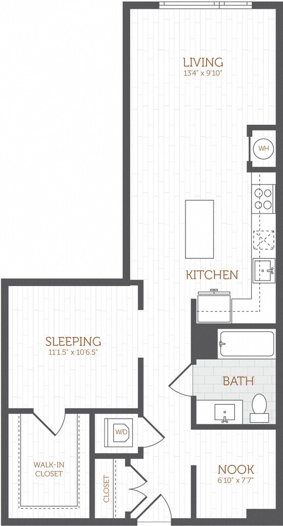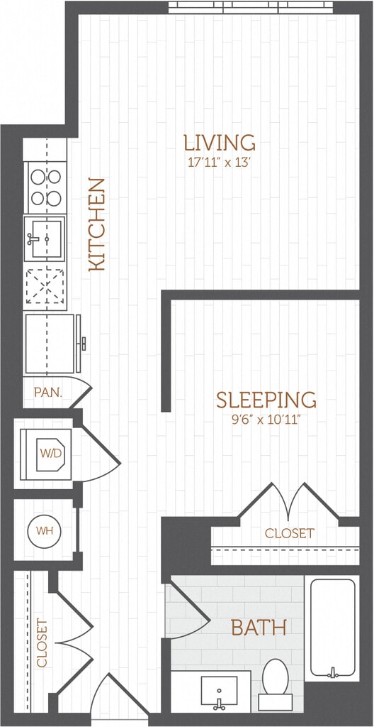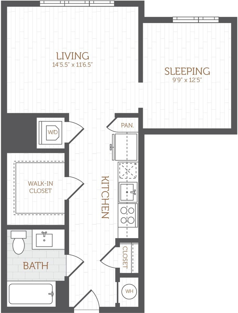 Studio, 1 Bath, 587 sq ftTotal Monthly PriceAvailable NowModel Gallery