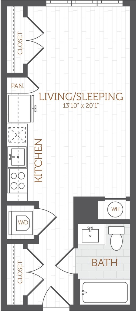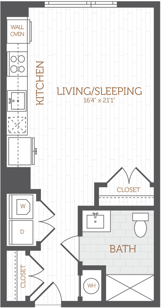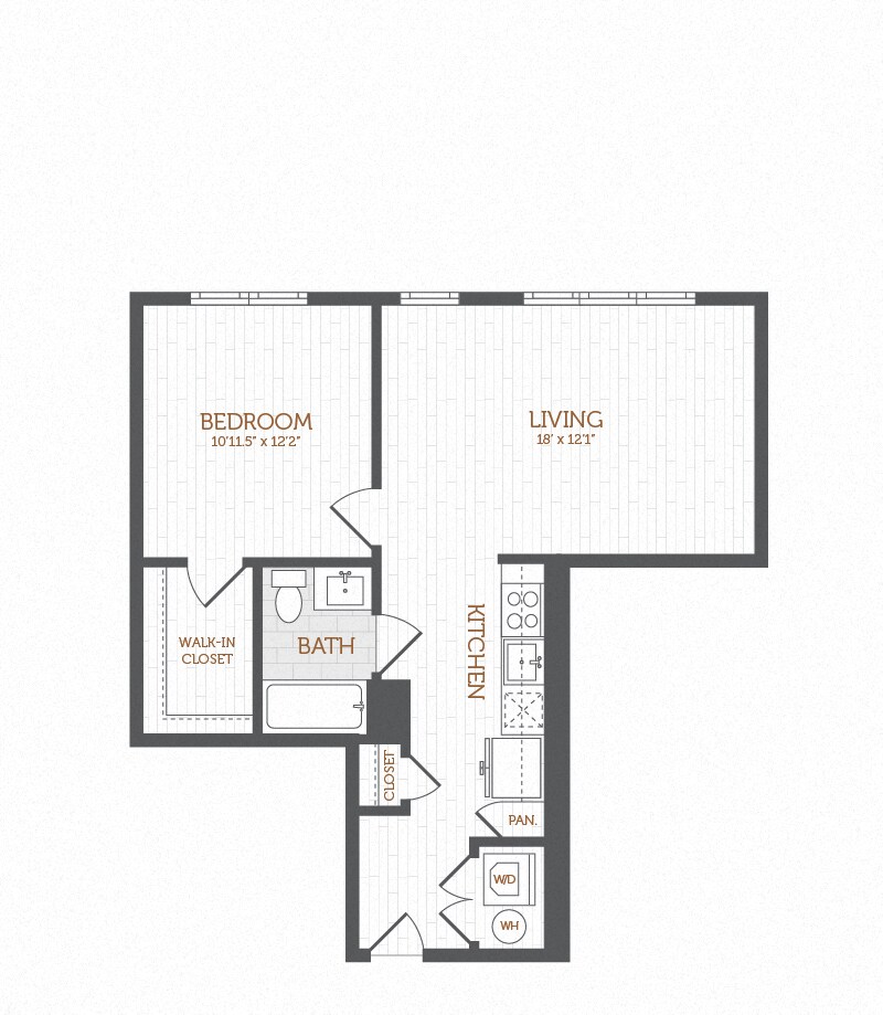 Studio, 1 Bath, 485-505 sq ftTotal Monthly PriceAvailable NowModel Gallery