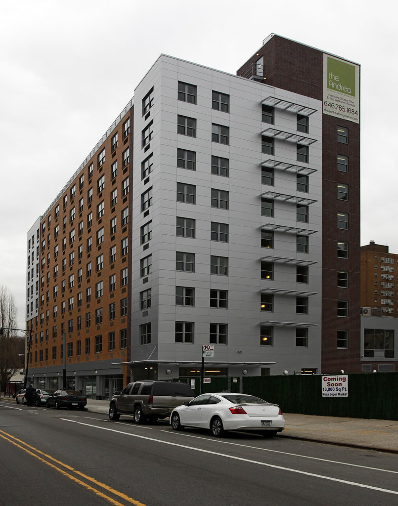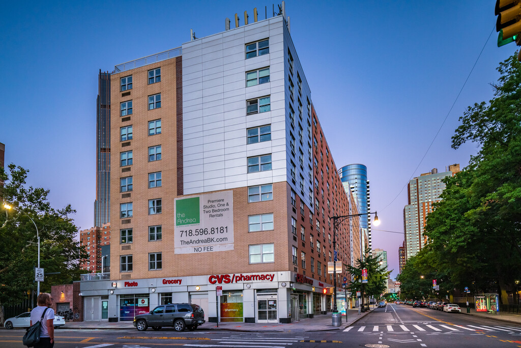 August 16, 2015The building is clean and the apartments are new and nice, especially if you've been living in older buildings or brownstones. Location is everything here. We wanted easy access to multiple neighborhoods in Brooklyn as well as to more than one train line. The Andrea sits on the edge of Fort Greene/Clinton Hill and is walking distance to DUMBO, Bklyn Heights and Downtown Bklyn. We get to each hood easily by bike or foot with our 5 year old son. We so love that there are several train lines ...nearby. One other big seller for us was the proximity to BAM and Barclay's (performing arts for me, basketball for my husband). And if you want to get to the city, walk over the Manhattan or Brooklyn Bridge. We also love that our dog only has a block to walk to Fort Greene Park. The building itself it fairly new so is still in good shape. Neighbors are great (we've become friends with several), dogs are well-behaved, and the building staff is helpful. Drawbacks: Myrtle Ave. is noisy; the closest entrance to Fort Greene Park is littered with cookout/party trash during summer months; amenities need maintenance/improvement like gym machines that sit broken for months or washers/dryers being down (although my husband just told me a new washer was installed today!). Overall, there are other buildings with similar rents where we could move in the neighborhood. But we stay for the great location and awesome neighbors.Read MoreReview from Apartments.com