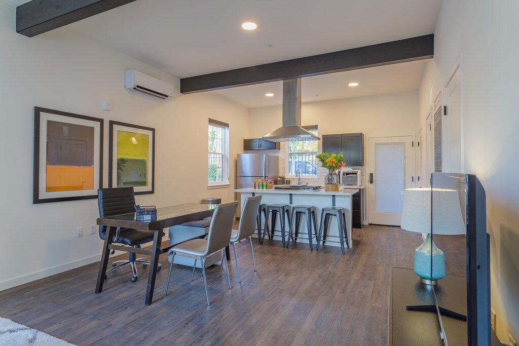 A bold blend of Spanish Revival architecture and modern elegance, The Angelino stands as a signature address along the iconic J Street. Offering one and two-bedroom floor plansincluding spacious lofts and two-story townhomesour luxury apartments in Sacramento range from 787 to 1,044 square feet and offer something more than just residences: they offer character. Step inside your home and feel the difference. High ceilings, quartz countertops, designer LED lighting, and full-size stacked washer/dryer sets give each layout a sophisticated edge, while select homes feature exposed wood beams or spiral staircases that turn your everyday into something extraordinary. As a resident of our community, you'll also enjoy gated entry, carports, a lush Spanish-style courtyard, and boutique retail just below. Live above it allliterally and figurativelyat Sacramentos newest destination for curated, urban living!