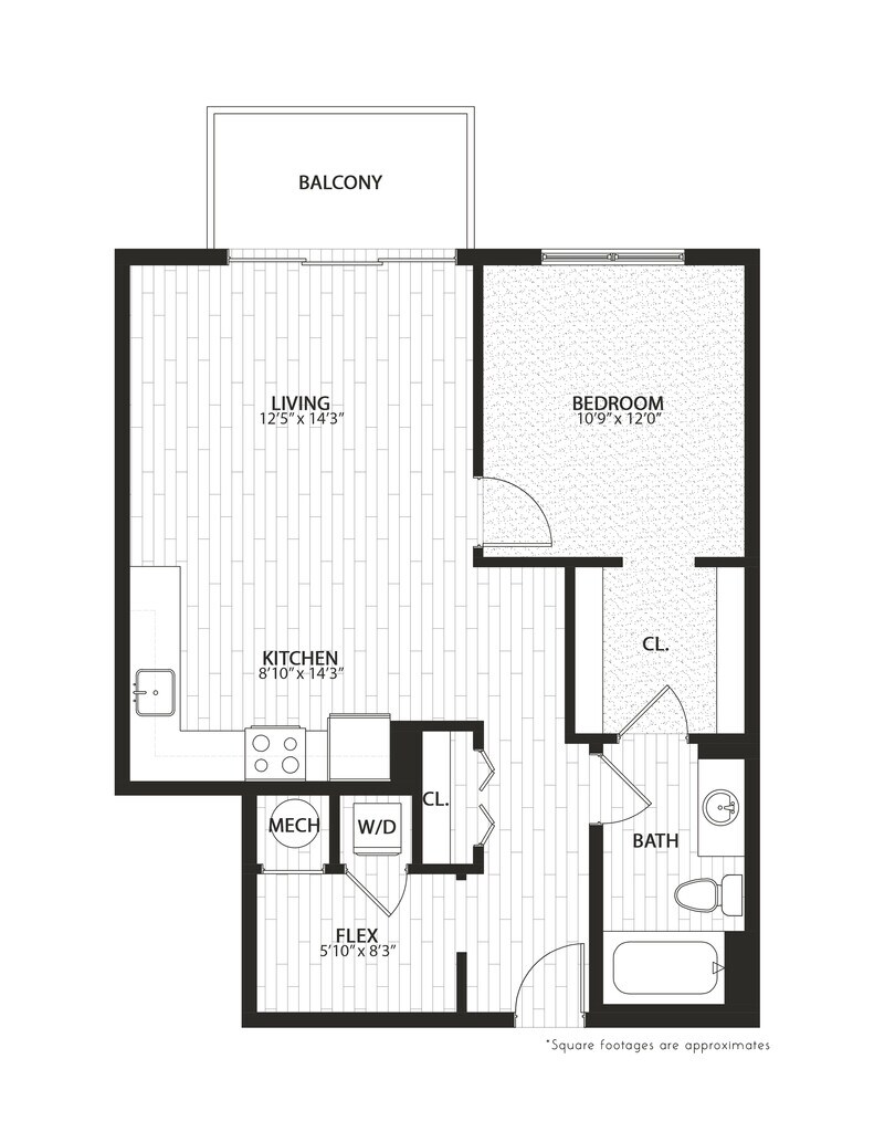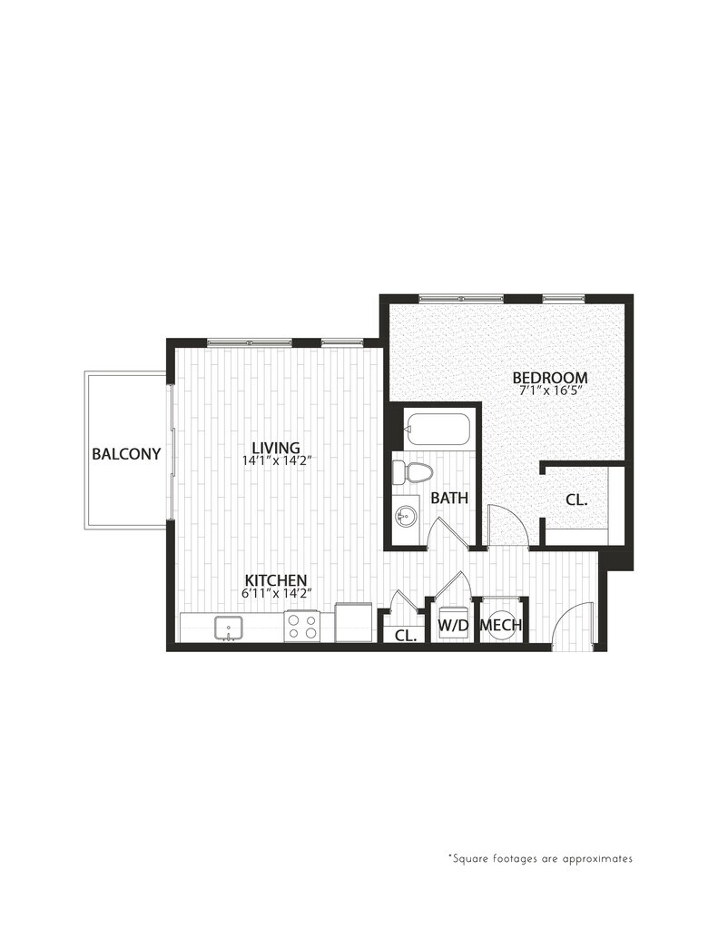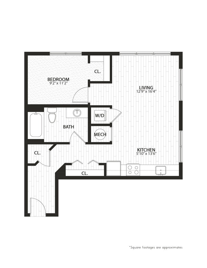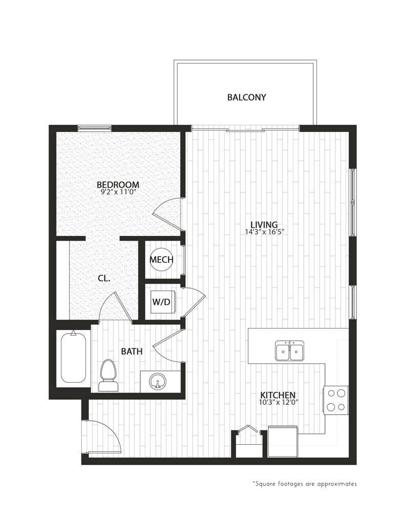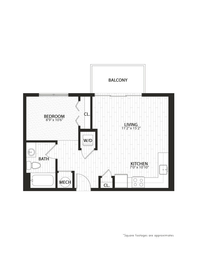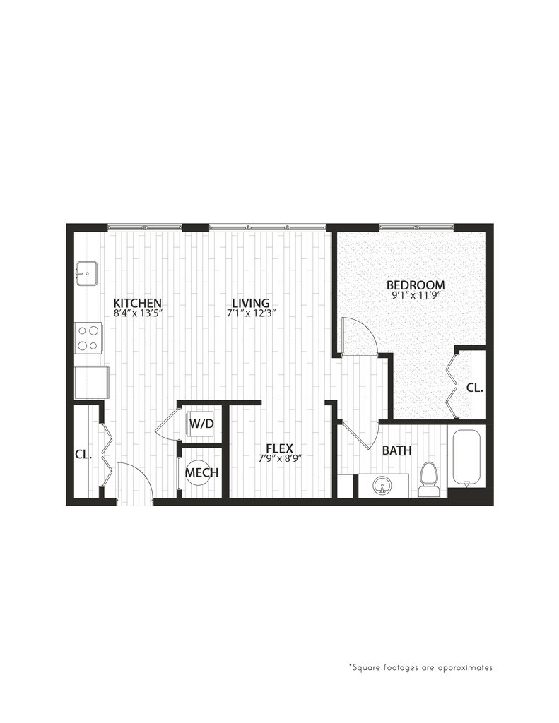Studio 1B - Floorplan 1 Apartment Unit: A210Apartment Model: Studio 1B$1,075Studio, 1 Bath, 416 sq ftAvailable Now![]()