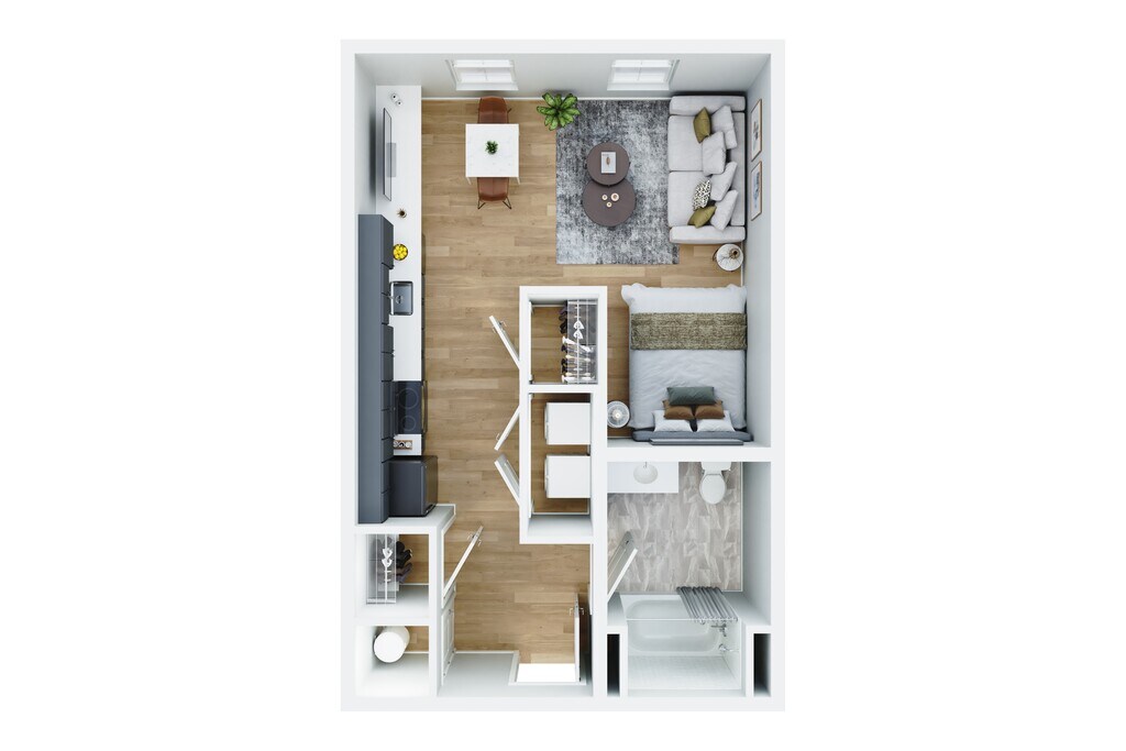 Studio, 1 Bath, 416 sq ftAvailable NowModel Gallery