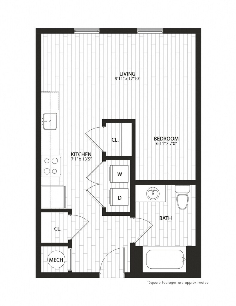 Studio 1C - Floorplan 1 Apartment Unit: B210Apartment Model: Studio 1C$1,100Studio, 1 Bath, 417 sq ftAvailable Now![]()