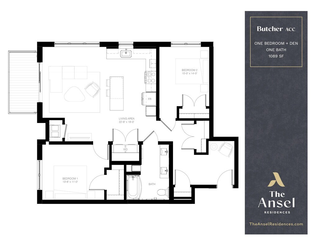 Apartment Model: Butcher | 1 + Den | ACC$2,2651 Bedroom, 1 Bath, 1089 sq ftAvailable Now![]()