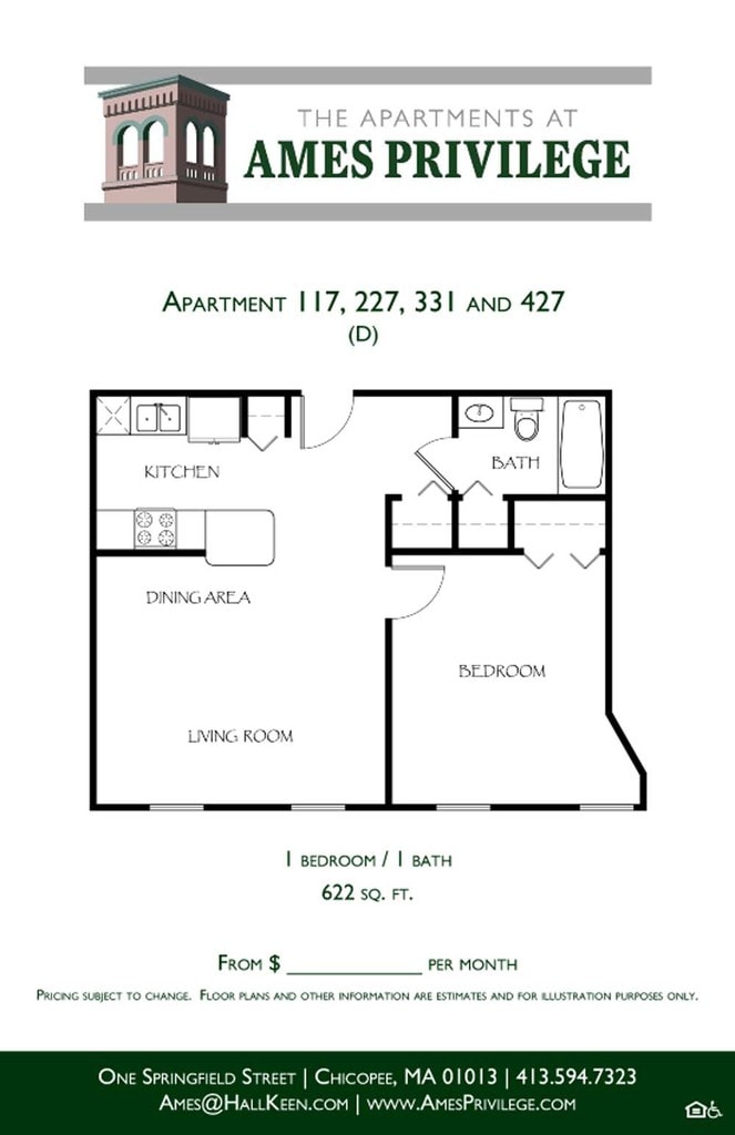 Apartment Model: 1 Bed 1 Bath - 622sf1 Bedroom, 1 Bath, 608-622 sq ftUnavailable1 Bed 1 Bath - 622sf - Floorplan 1 2 Bedrooms