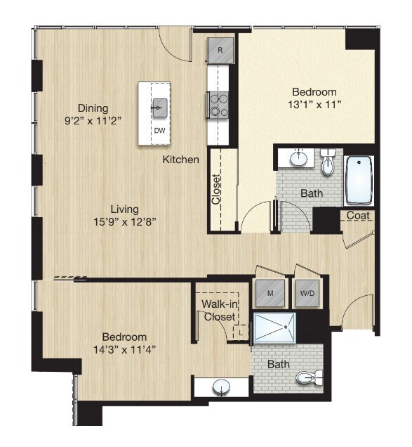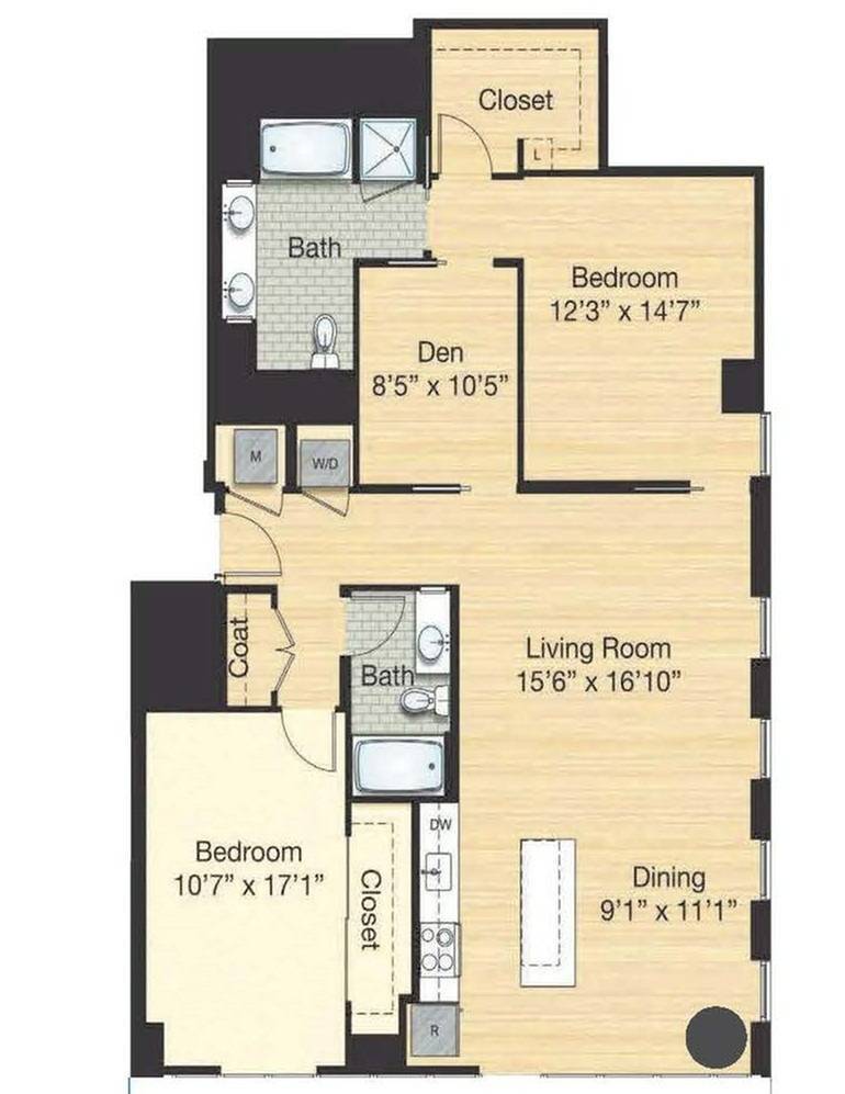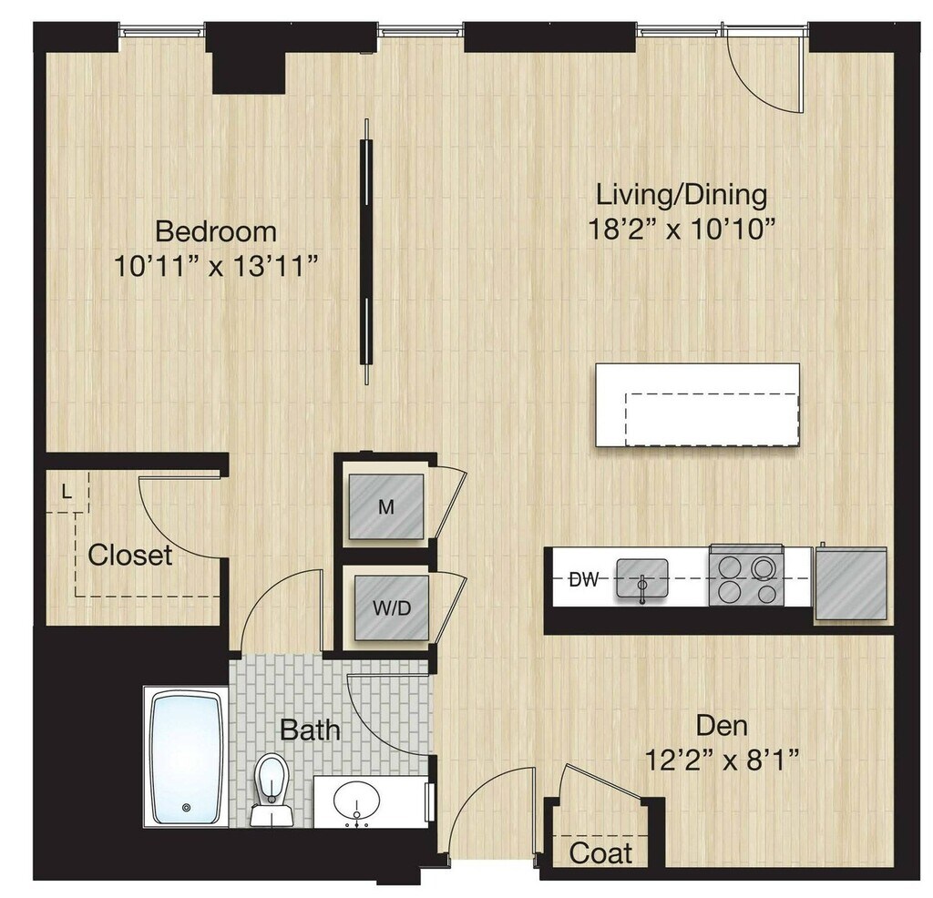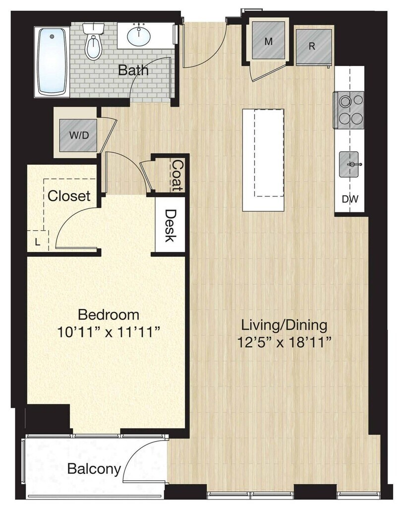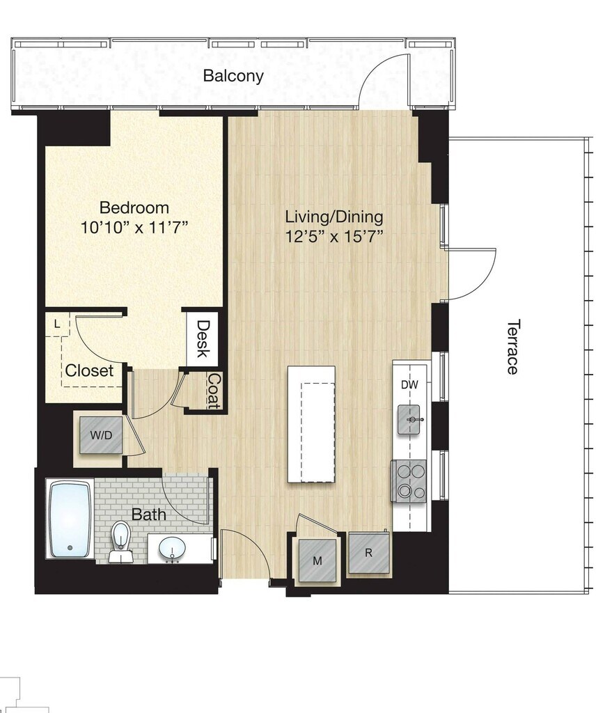 Tier 87.0 - Studio - Floorplan 1 Tier 27.0 - 1 Bed/1 Bath