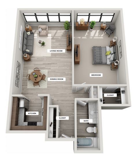 1 Bed, 1 Bath, 640 sq ftModel Gallery