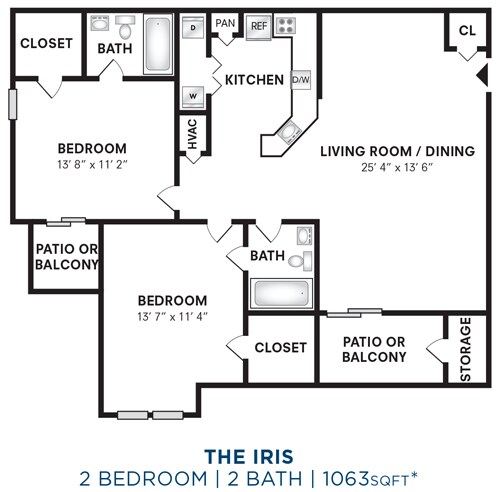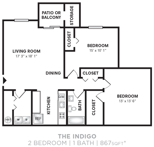 Apartment Model: Two Bedroom -867 sqftFrom $1,5002 Bedroom, 1 Bath, 867 sq ftAvailable Now![]()