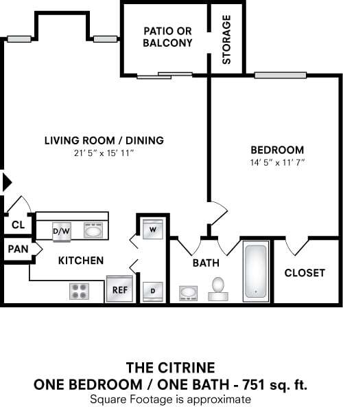 One Bedroom- 751sq ft - Floorplan 1 ![]()