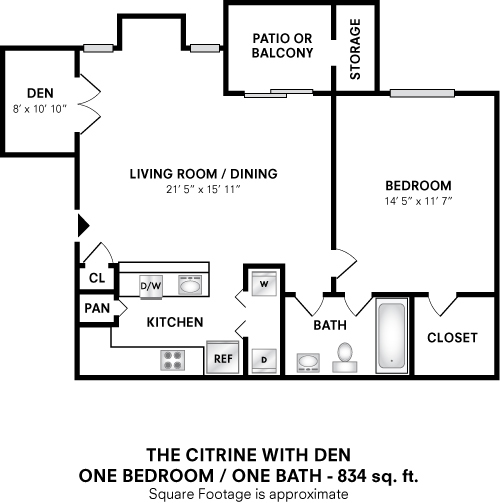 Availability Date Unit Sq Ft Call for Availability One Bedroom w/ Den - 834 sqft 834 sq ft Model Amenities and Features