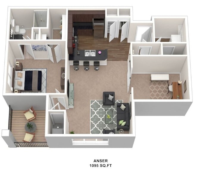 Apartment Model: AnserCall For Rates1 Bedroom, 1.5 Bath, 1095 sq ftUnavailableAnser - Floorplan 1 2 Bedrooms