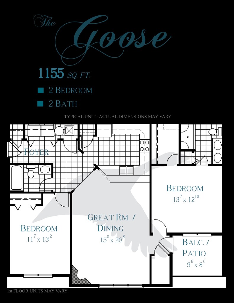 Price Availability Date Unit Sq Ft $1,837 Available Now The Goose 1155 sq ft Model Amenities and Features