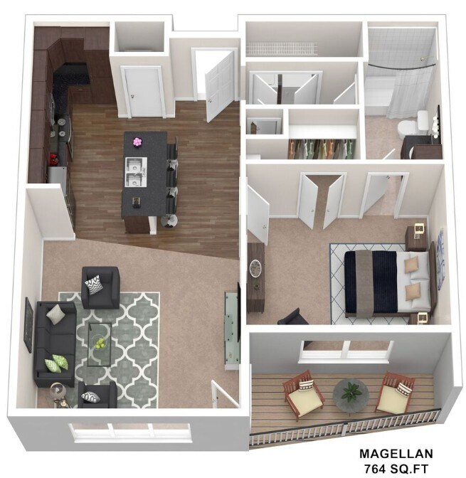 Apartment Model: MagellanCall For Rates1 Bedroom, 1 Bath, 764 sq ftAvailable NowMagellan - Floorplan 1 The Gosling