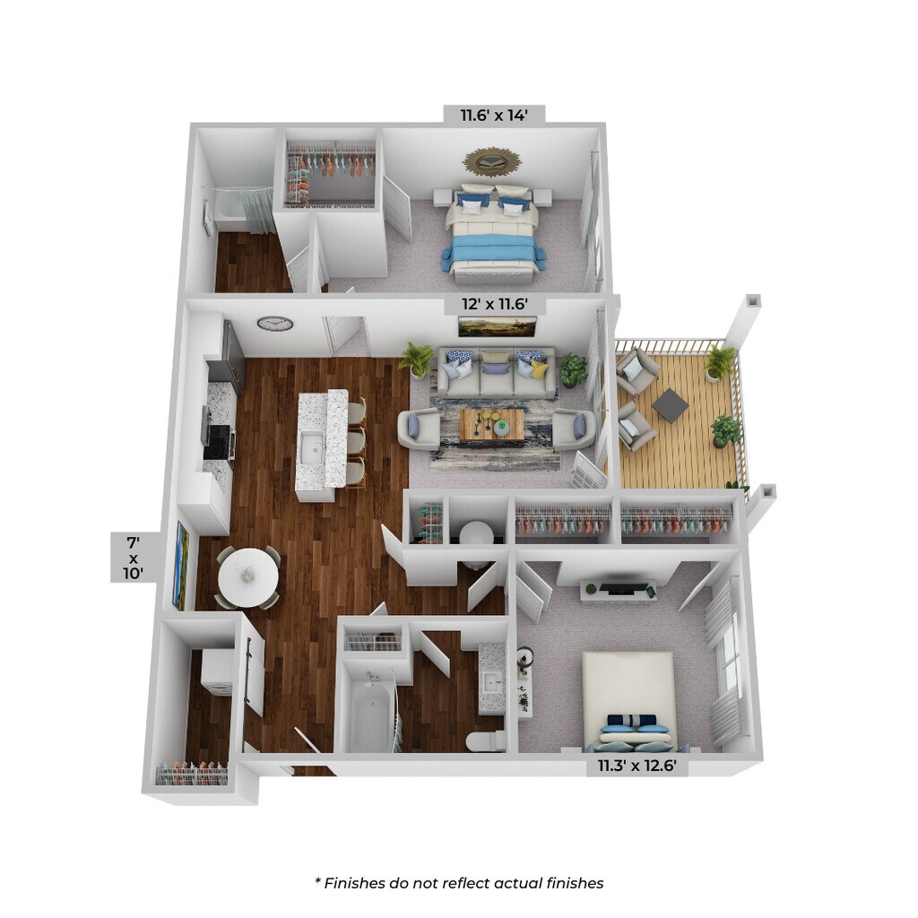 2 Beds, 2 Baths, 1116 sq ftAvailable NowModel Gallery