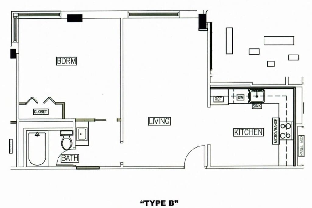 Apartment Model: Type D/E1 Bedroom, 1 Bath, 527 sq ftUnavailableFloorplansPhotosType D/E - Image 1 Type D/E - Image 2 Type D/E - Image 3 Type D/E - Image 4 Type D/E - Floorplan 5 Type D/E - Floorplan 6 Type C