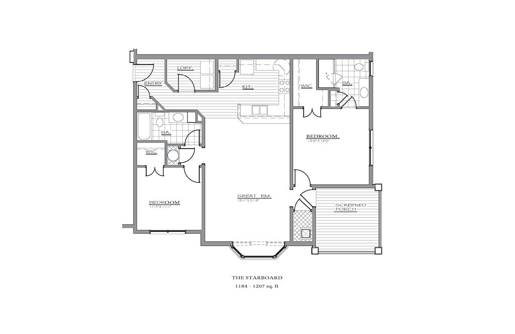 - 2 Bedrooms- The Starboard2 Beds, 2 Baths, 1184-1207 sq ftAvailable Now- Model Gallery- Floorplans- Photos- Availability Details- Price - Availability Date - Unit - Sq Ft - View Details - Call For Rates - Available Now - 200K-A102 - 1184 - Call For Rates - Available Now - 300A-103 - 1184 - Model Amenities and Features- Features- Air Conditioning