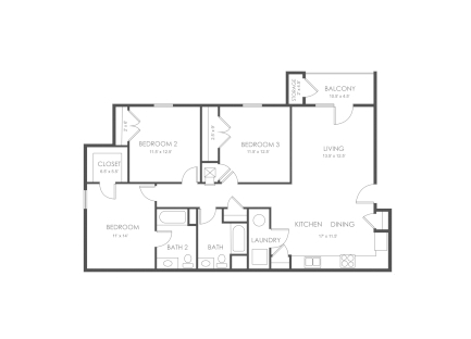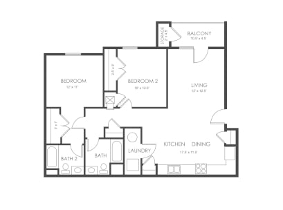 2 Beds, 2 baths - Floorplan 1 3 Bedrooms