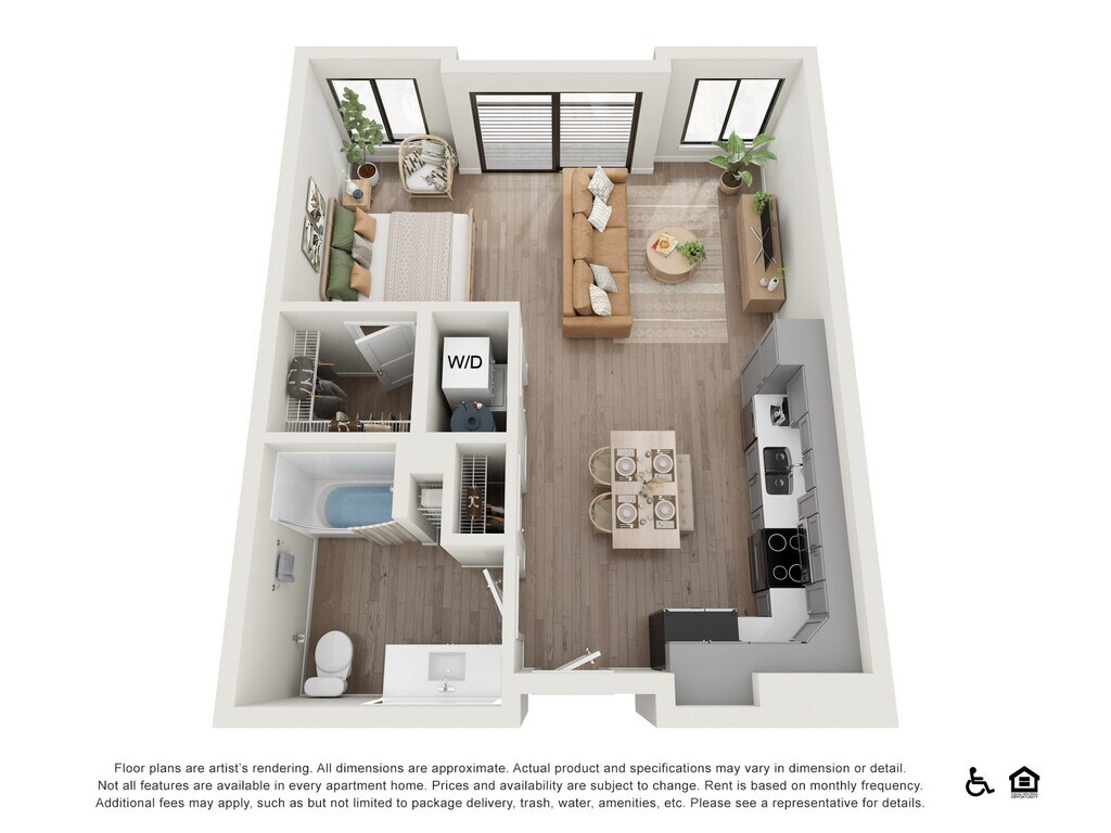 Apartment Model: SFrom $1,605Studio, 1 Bath, 639 sq ftAvailable NowFloor plans are artist's rendering. All dimensions are approximate. Actual product and specifications may vary in dimension or detail. Not all features are available in every rental home. Prices and availability are subject to change. Base rent is based on monthly frequency. Additional fees may apply, such as but not limited to package delivery, trash, water, amenities, etc. Deposits vary. Please see a representative for details.