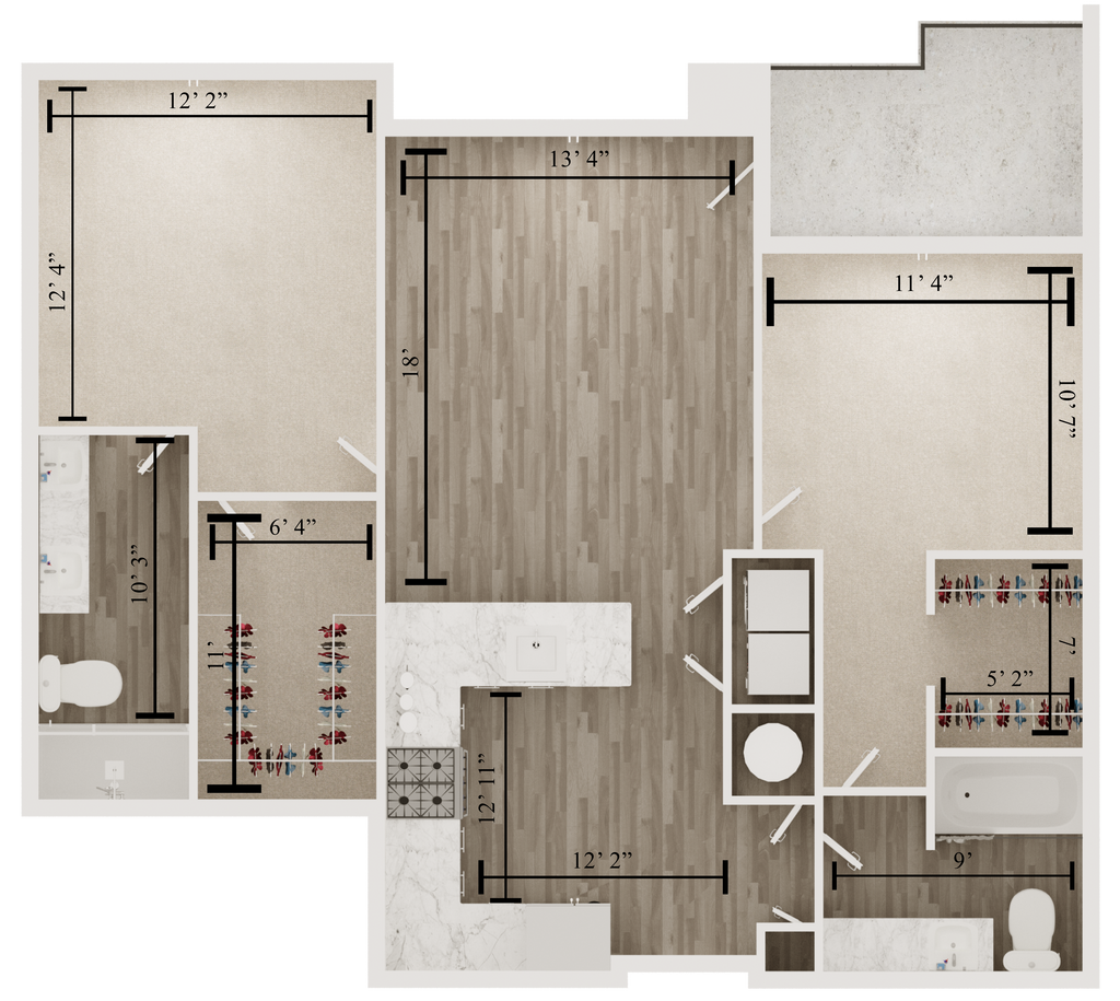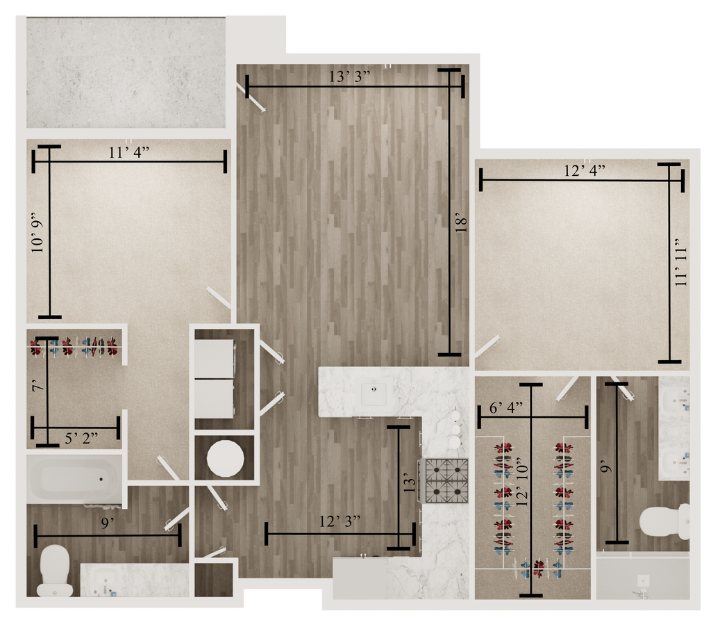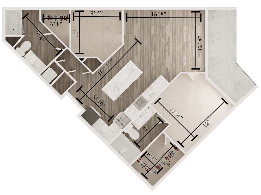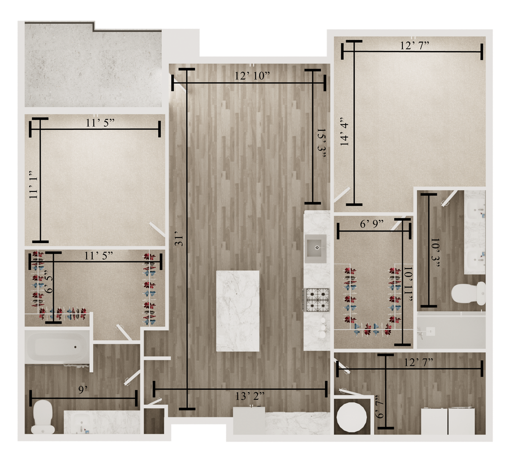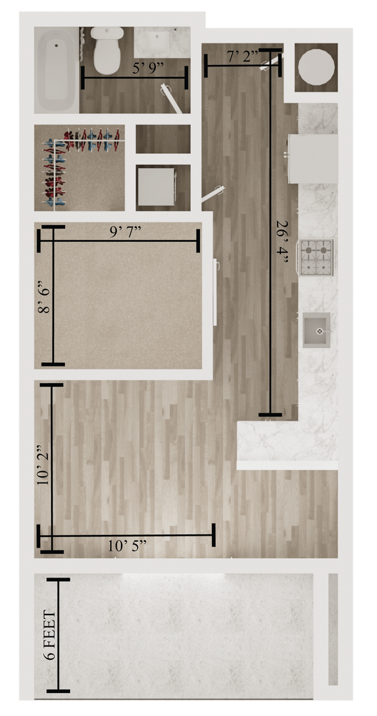 Studio, 1 Bath, 568 sq ftAvailable NowModel Gallery