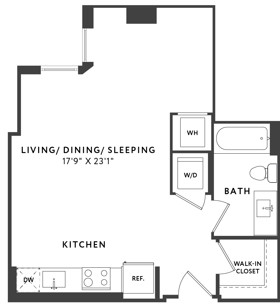 Studio, 1 Bath, 579 sq ftAvailable January 5, 2026Model Gallery