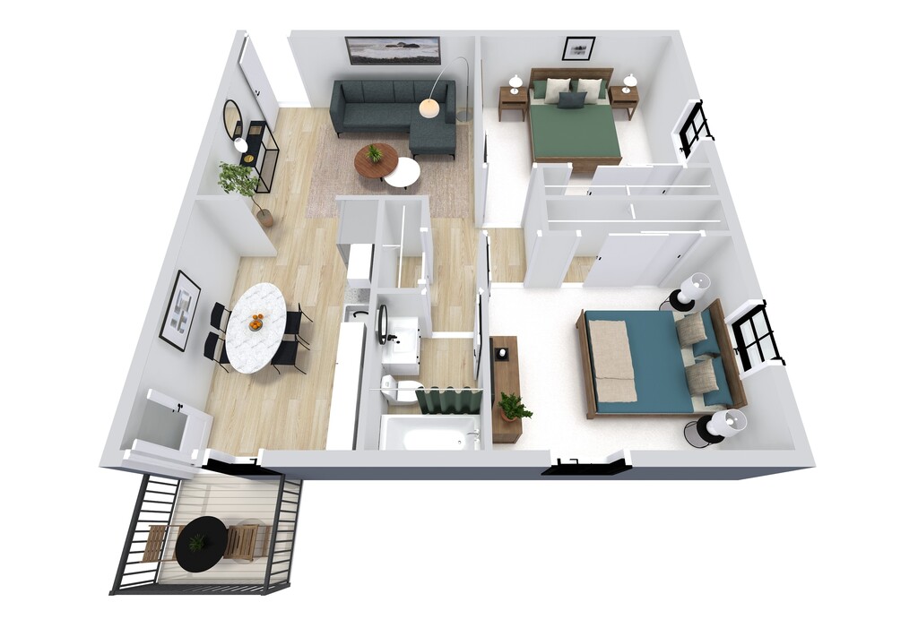 2 Beds, 1 Bath, 890 sq ftAvailable NowModel Gallery
