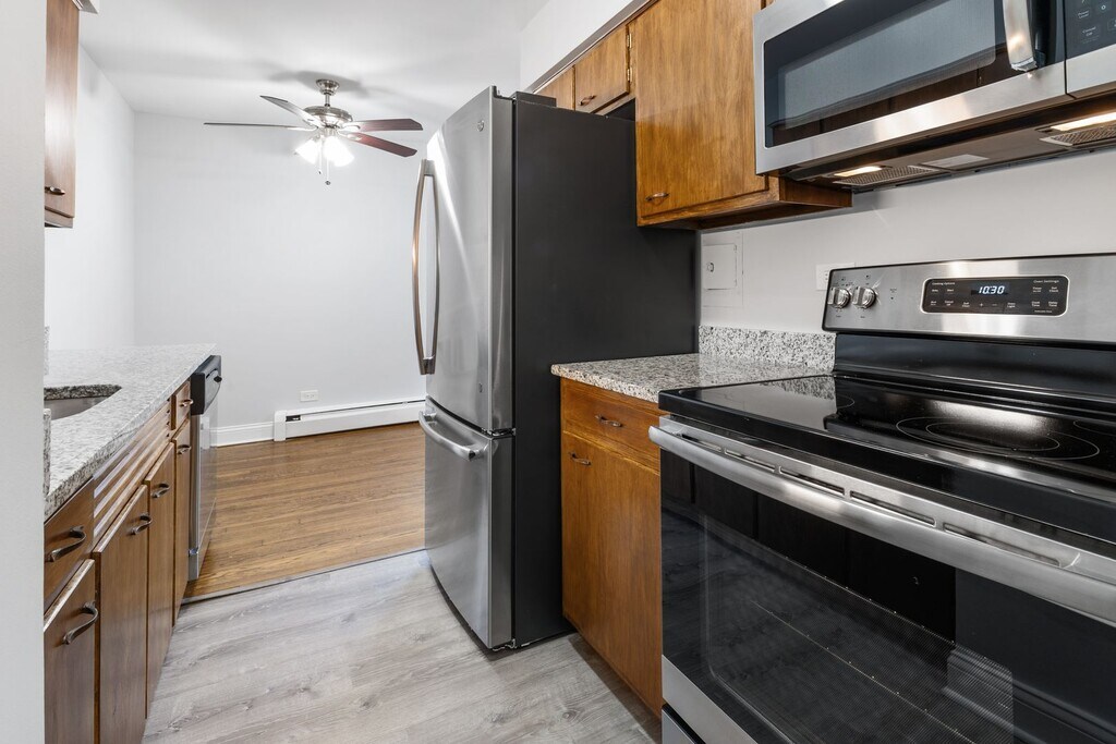 —Dark Toned Wood Kitchen Cabinets —Granite Countertops with Deep Undermount Sink —Bright White Appliances —Renovated Bathroom —Spacious Living with Top Floor East View —Dark Wood Flooring —Bedroom has Walk-in Closet —LED Lighting —Heat/Water Included —AC Wall Unit Included —Pets Welcome (No Pet Rent)