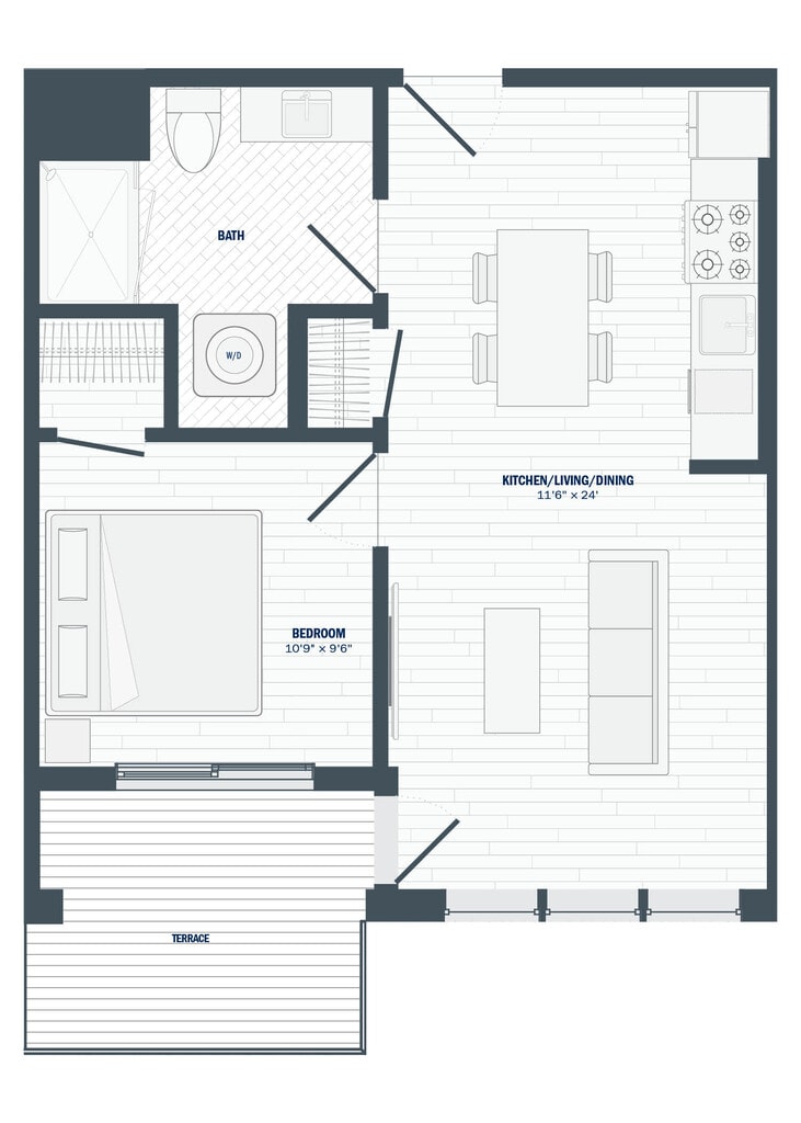 Apartment Unit: 205Apartment Model: 1 Bed / 1 Bath$2,2501 Bedroom, 1 Bath, 630 sq ftAvailable Now![]()