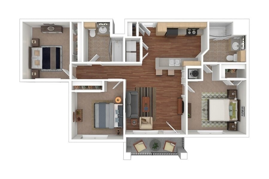 Apartment Model: Oak 3 bedroomsFrom $1,2493 Bedroom, 2 Bath, 1103 sq ftAvailable Now![]()