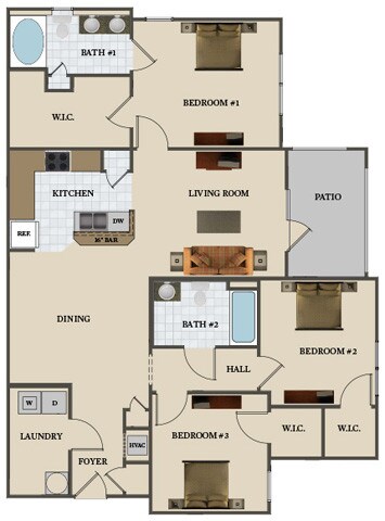 3 Beds, 2 Baths, 1469 sq ftAvailable NowModel Gallery
