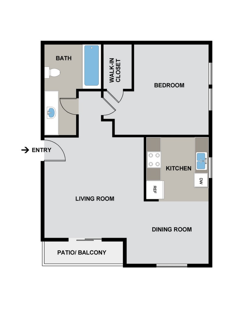 Apartment Model: P1B$2,4401 Bedroom, 1 Bath, 704 sq ftAvailable NowFloorplansPhotos![]()