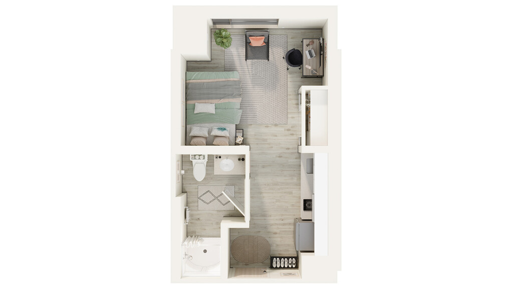 Studio, 1 Bath, 292 sq ft