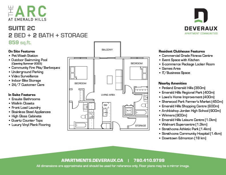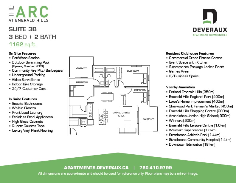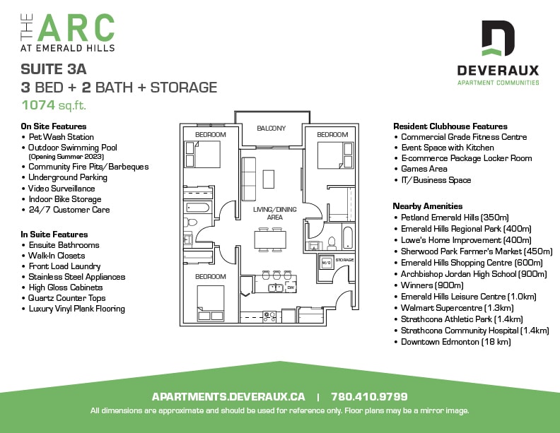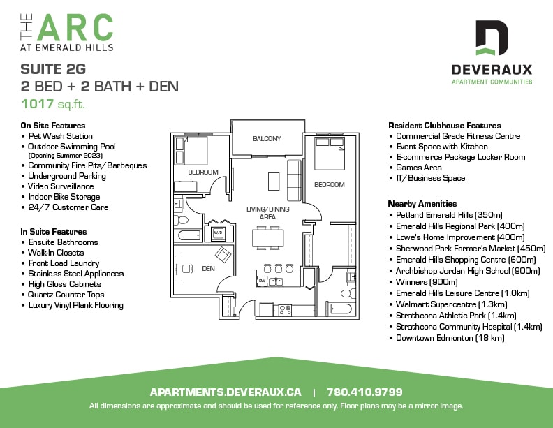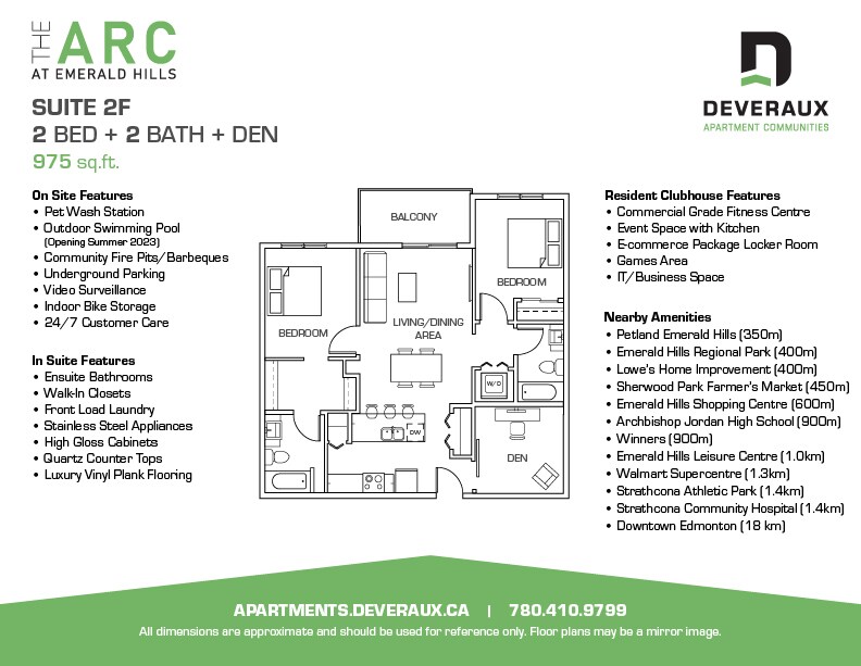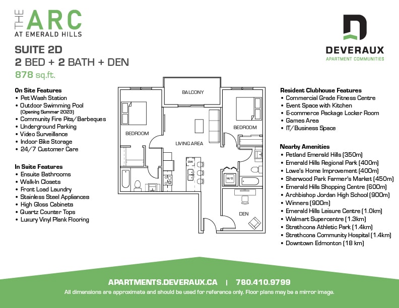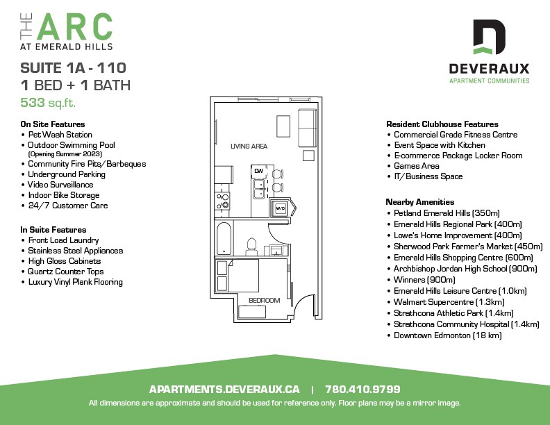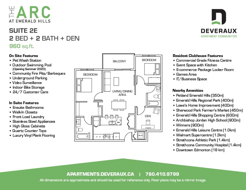 Enjoy convenient amenities, contemporary design, and a prime location at The Arc at Emerald Hills - a pet-friendly community like no other. Choose from one, two and three bedroom apartments for rent. All suites are equipped with full-size stainless steel appliances, in-suite laundry, contemporary finishes including high-gloss cabinets, quartz countertops, and luxury vinyl plank flooring.Host a private event, have a movie night, complete a workout, and much more in your exclusive Resident Clubhouse complete with a lounge, cafe-style coworking space, commercial-grade fitness centre, and outdoor swimming pool.