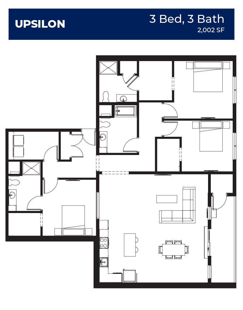 The Arch offers 1 to 3 Bedroom apartments starting from $1,340 and having 1,002–1,902 sq ft. Here is the current pricing and availability: