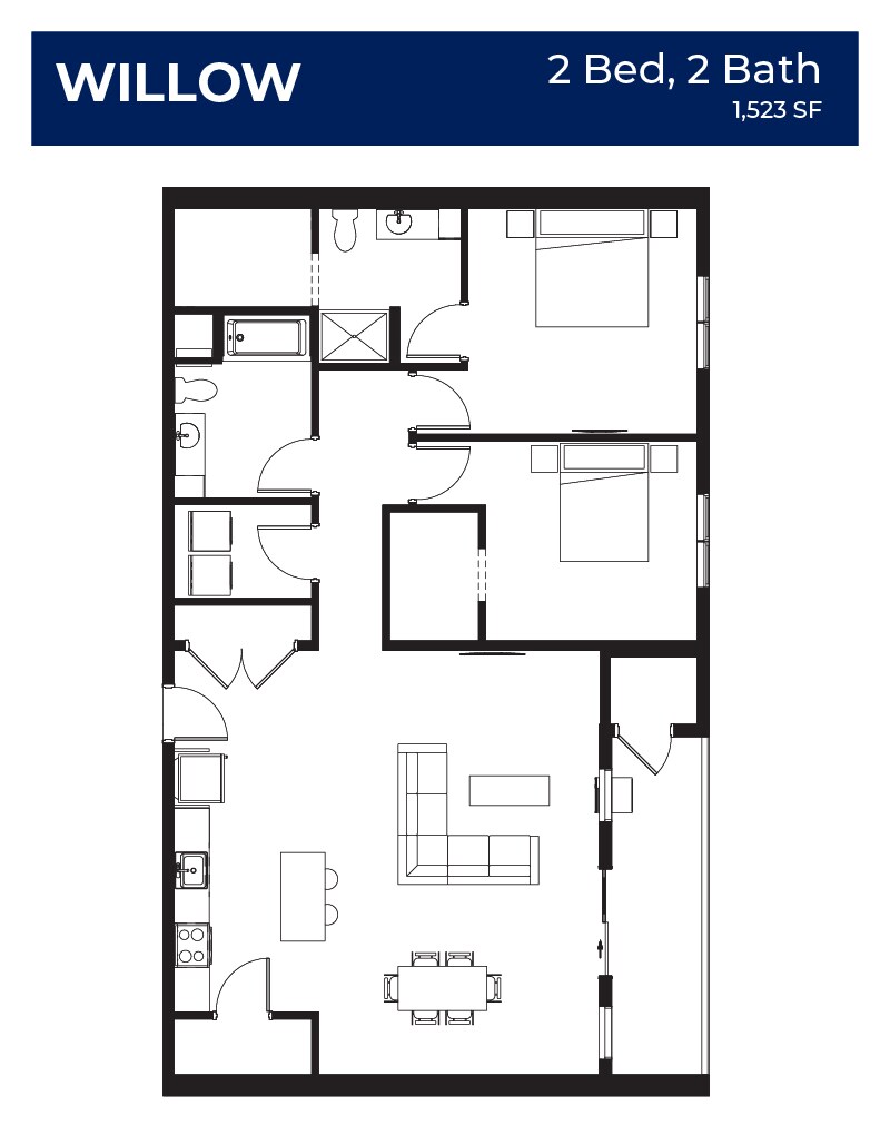 Arroda - Floorplan 14 Apartment Unit: 304Apartment Model: Arroda$1,8752 Bedroom, 1.5 Bath, 1694 sq ftAvailable NowWillow