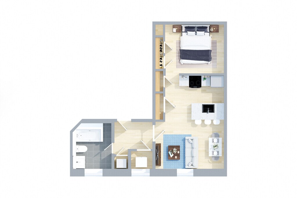 1 Bed, 1 Bath, 590 sq ftModel Gallery