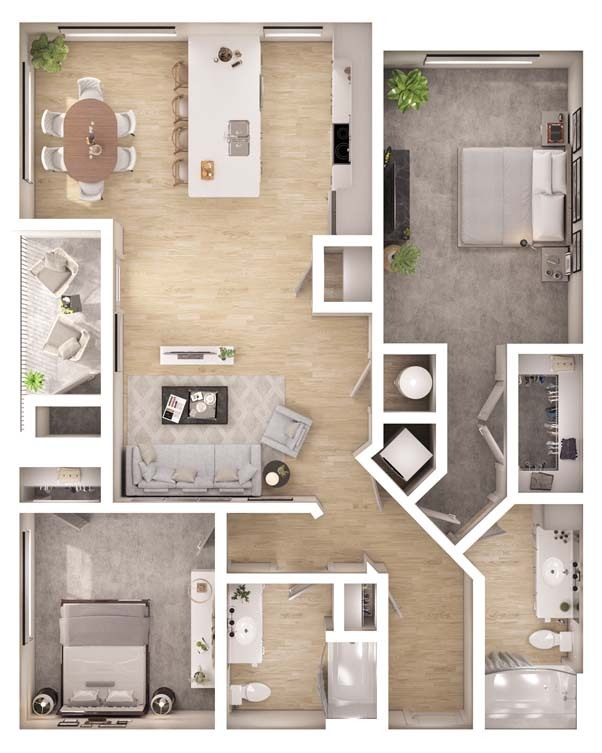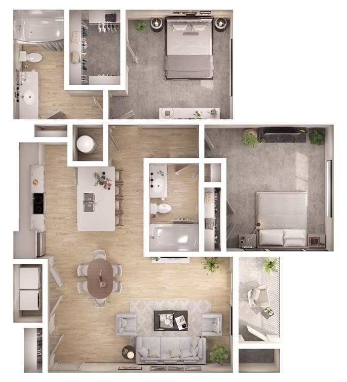 2 Beds, 2 Baths, 1197 sq ftAvailable NowModel Gallery