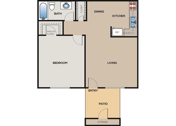 Apartment Model: A1From $6731 Bedroom, 1 Bath, 587 sq ftAvailable Now![]()