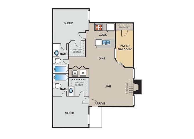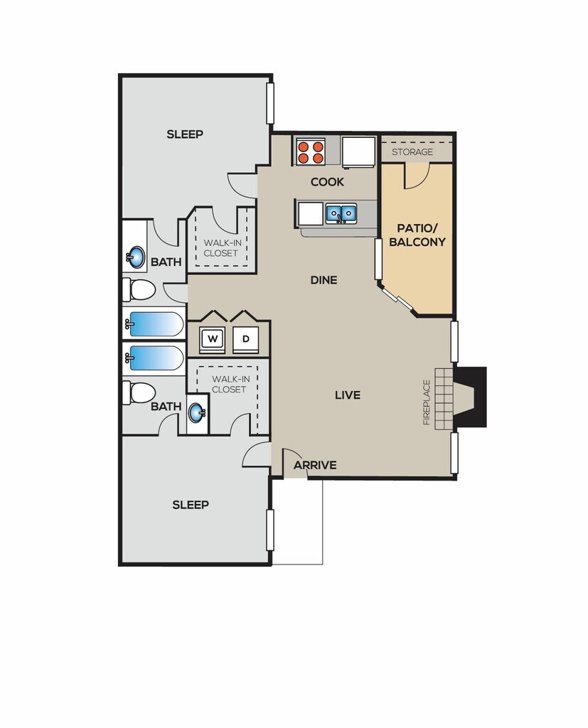 Apartment Model: A2RFrom $7411 Bedroom, 1 Bath, 662 sq ftAvailable Now![]()