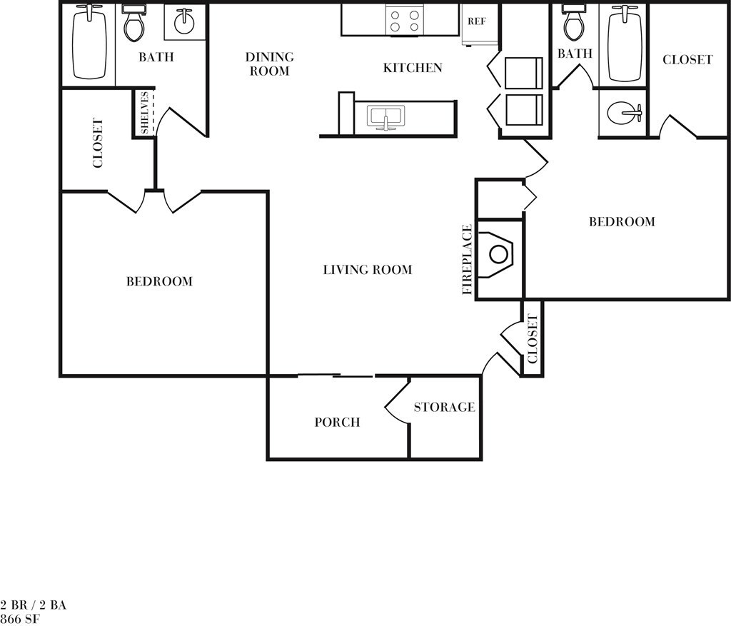 2 Beds, 2 Baths, 965 sq ftLargest 2 BedroomThis is the largest 2 Bedroom at this PropertyModel Gallery