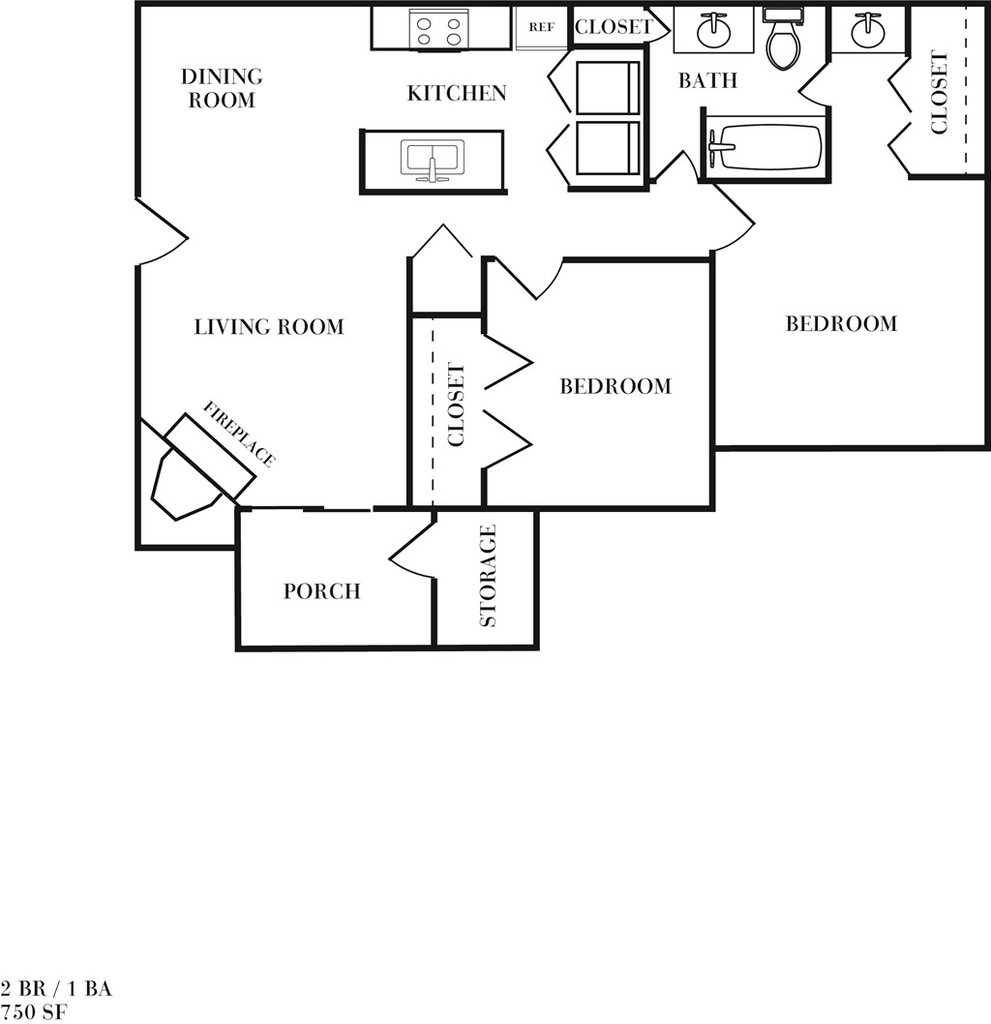 2 Beds, 1 Bath, 750 sq ftAvailable NowModel Gallery