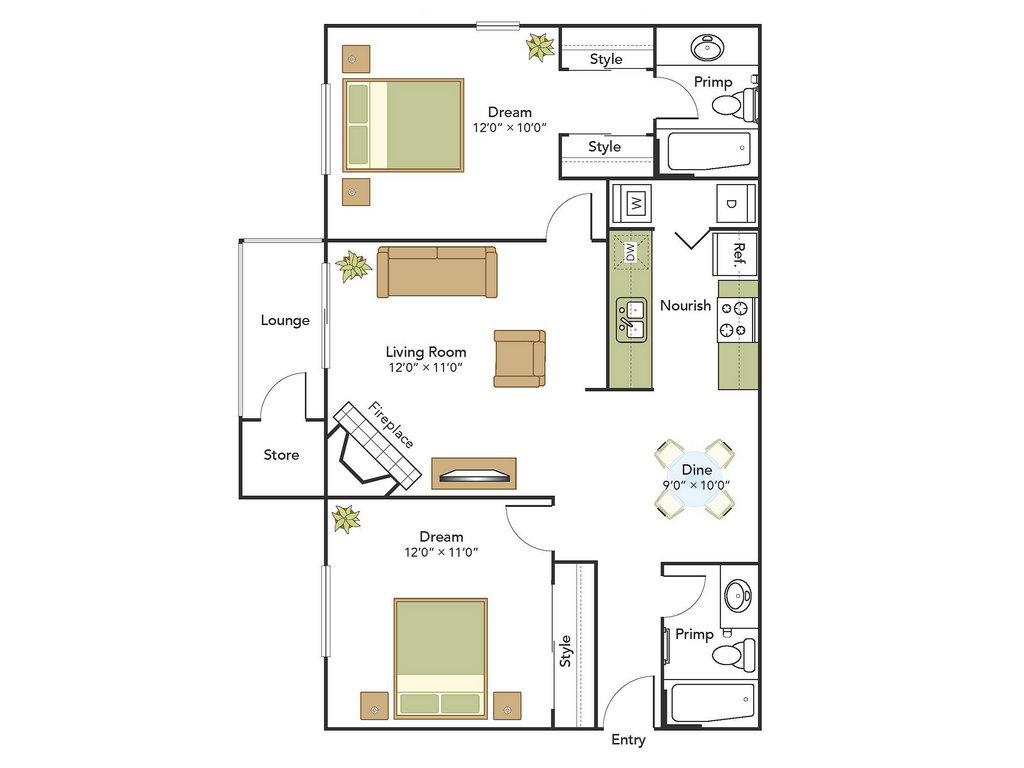 Apartment Model: 2 Bed, 2 Bath A UpgradedFrom $2,0282 Bedroom, 2 Bath, 880 sq ftAvailable NowFloor plans are artist's rendering. All dimensions are approximate. Actual product and specifications may vary in dimension or detail. Not all features are available in every rental home. Please see a representative for details.