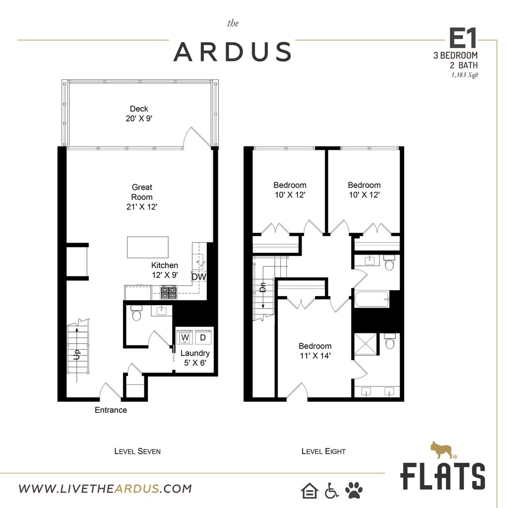 The Ardus is an old-meets-new luxury apartment building incorporating a former 1920s warehouse with a glass and steel structure. The Ardus now offers sleek, contemporary studio, 1-bedroom, and 2-bedroom duplex apartments and a lobby-level coffee shop. Features throughout include high ceilings with floor-to-ceiling windows, glazed concrete & wood floors, spa-like baths with glass-enclosed rain showers & an in-unit stack washer/dryer. Resident rooftop lounge complete with kitchen, pool table & sweeping city views. The outdoor lounge features grills & a firepit. The rooftop level also features the newest Edition of FLATS Fit, a bright fitness center complete with a yoga room. The Ardus is a reference to Henry A. Bogardus & Co, which manufactured gauges and valves at the location of the current building in the early 1900s.