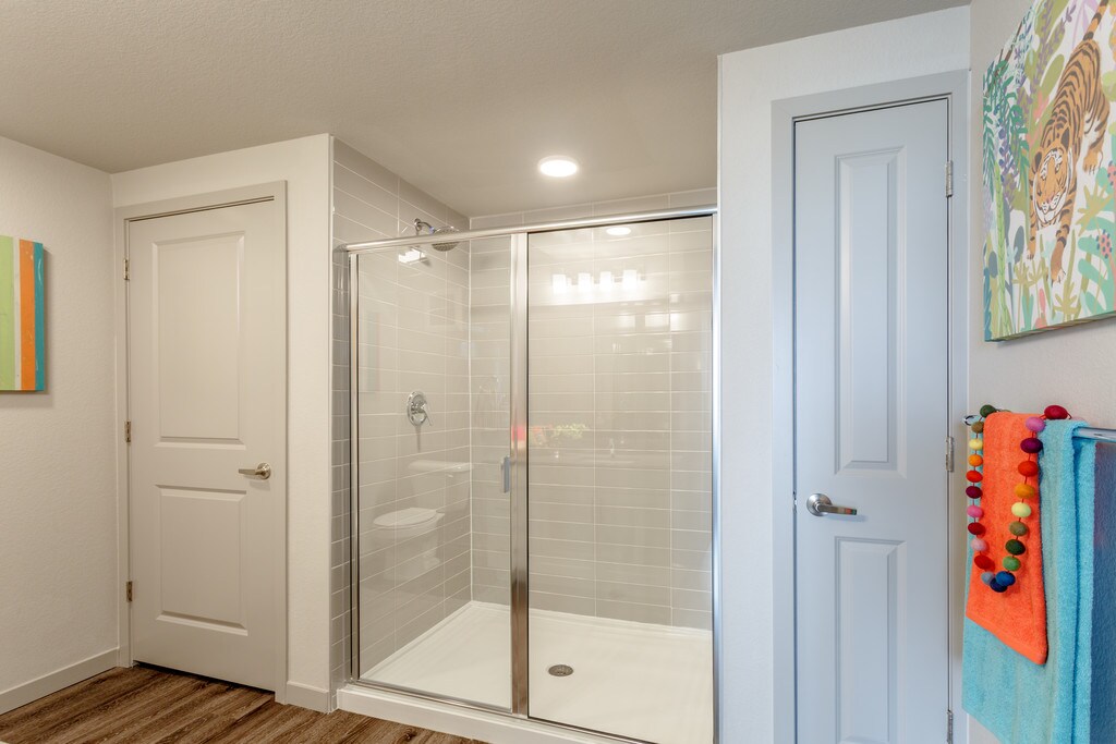 - Walk-in, Glass Door Showers with Rainfall Showerhe