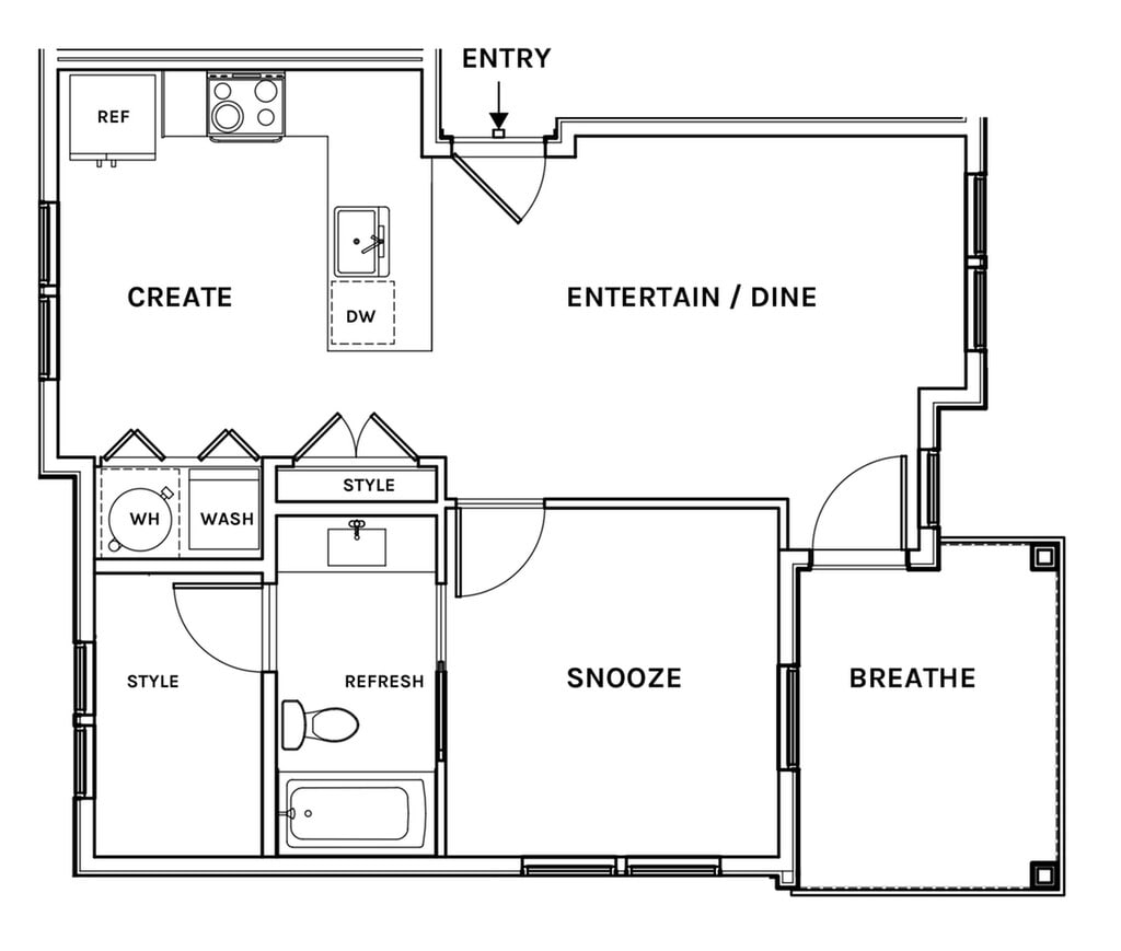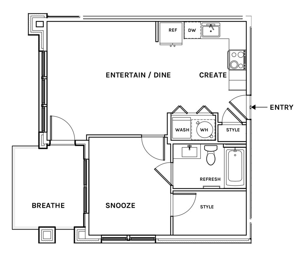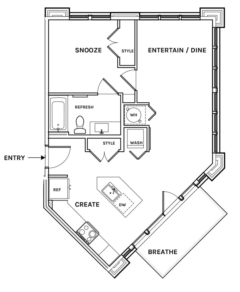 Studio, 1 Bath, 542-544 sq ftAvailable NowModel Gallery